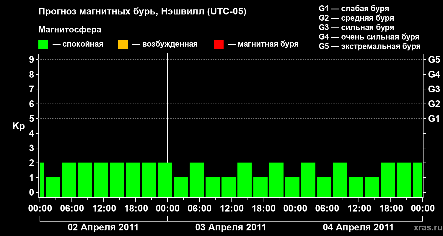 Прогноз магнитных бурь в Нэшвилле — 2 апреля 2011 года