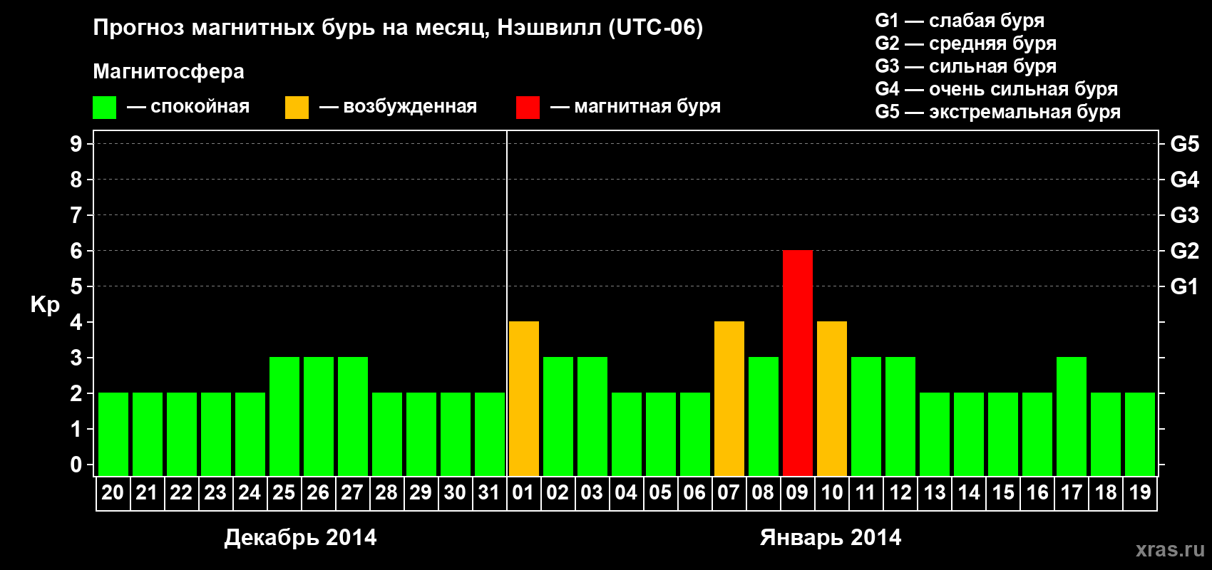 Прогноз магнитных бурь в Нэшвилле — 20 декабря 2013 года