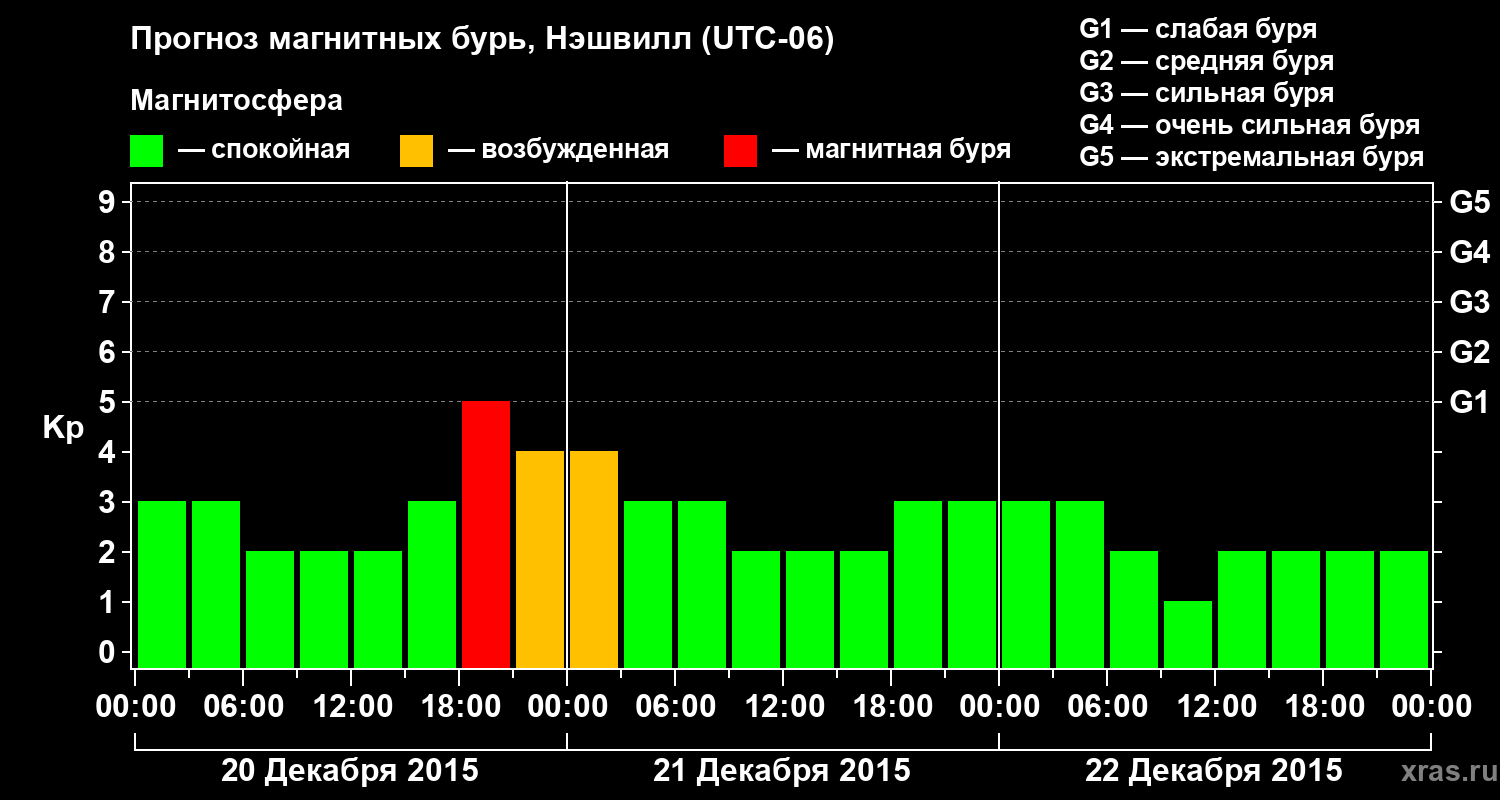 Прогноз магнитных бурь в Нэшвилле — 20 декабря 2015 года