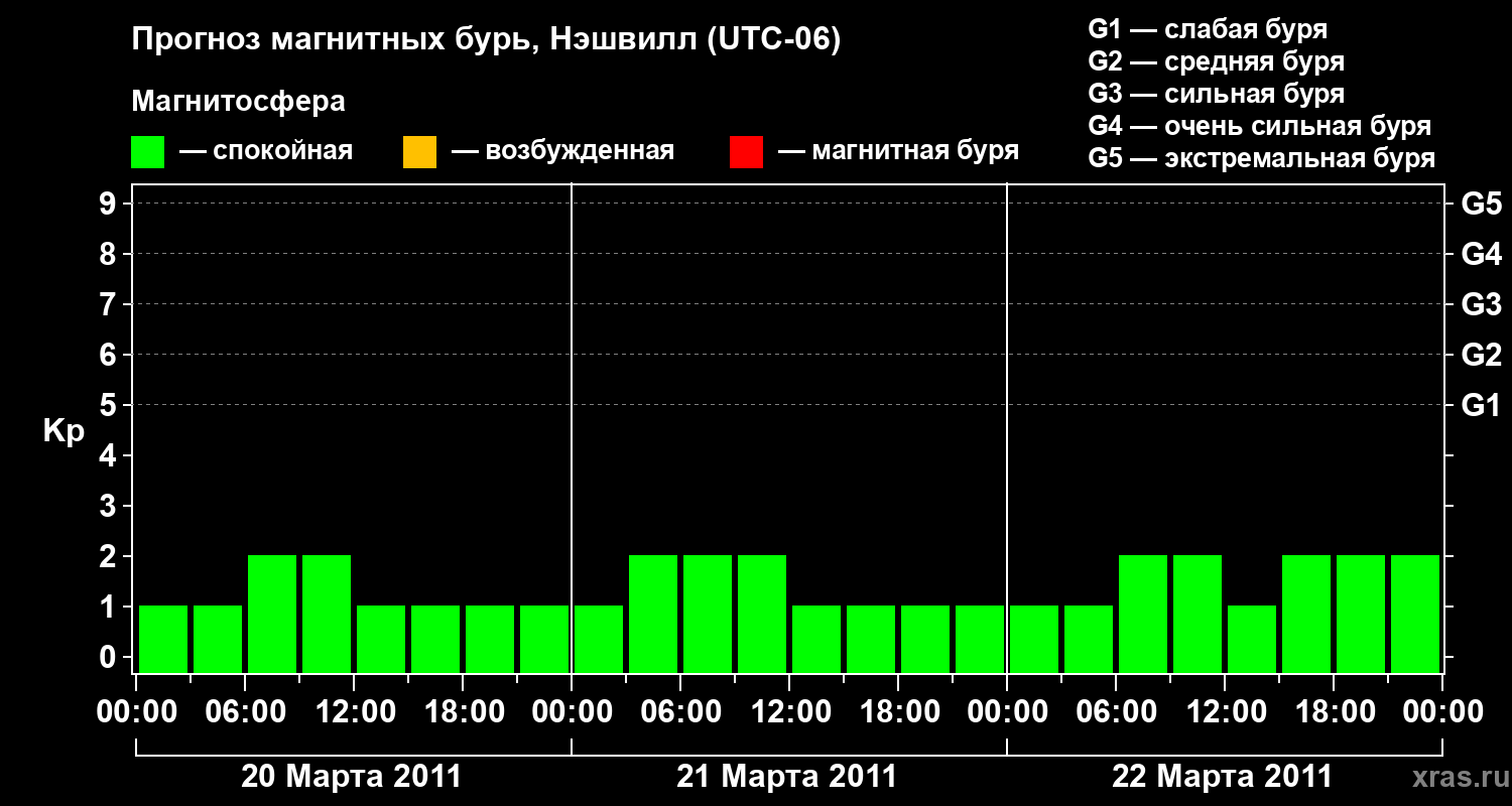 Прогноз магнитных бурь в Нэшвилле — 20 марта 2011 года