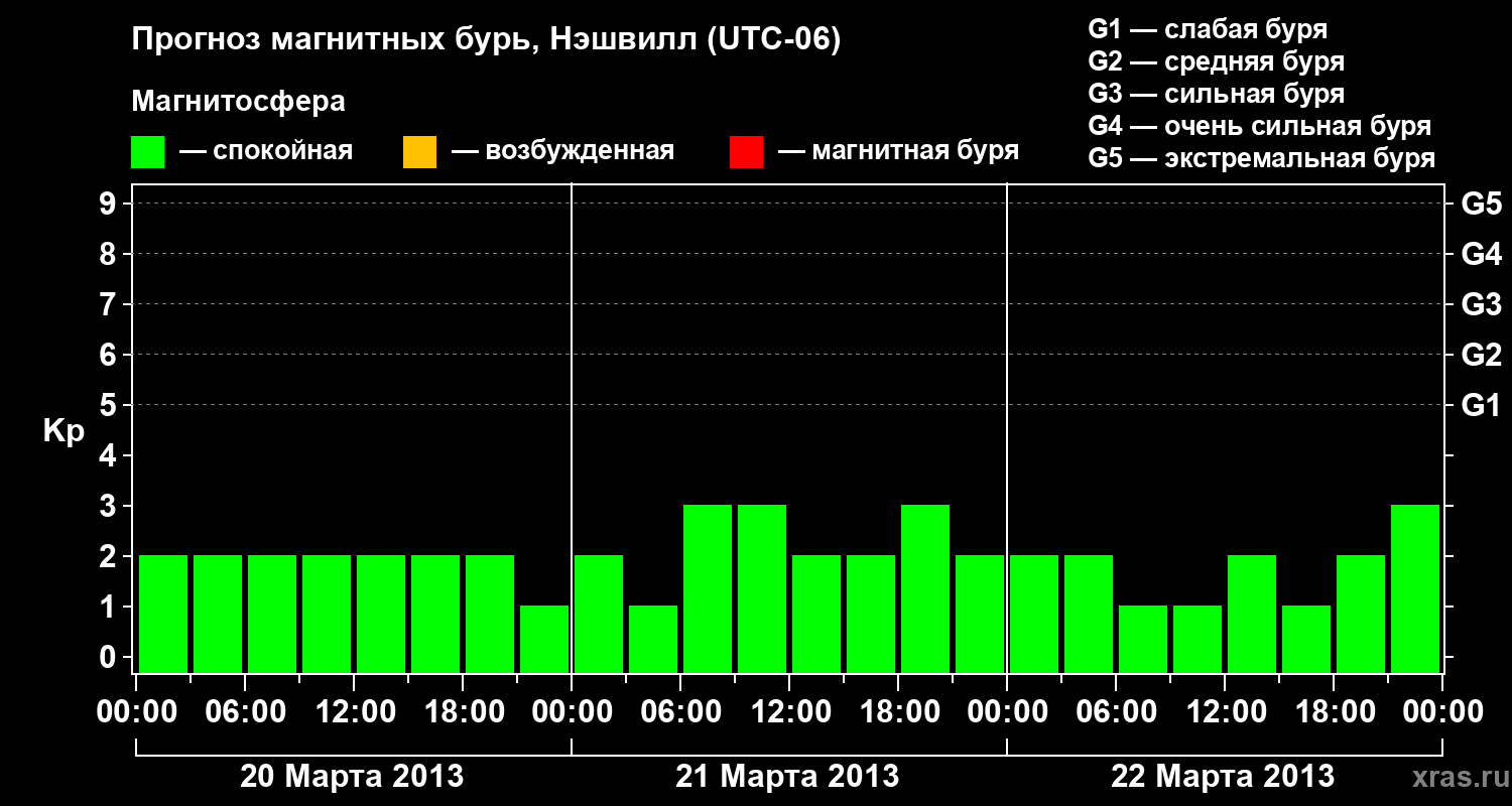 Прогноз магнитных бурь в Нэшвилле — 20 марта 2013 года