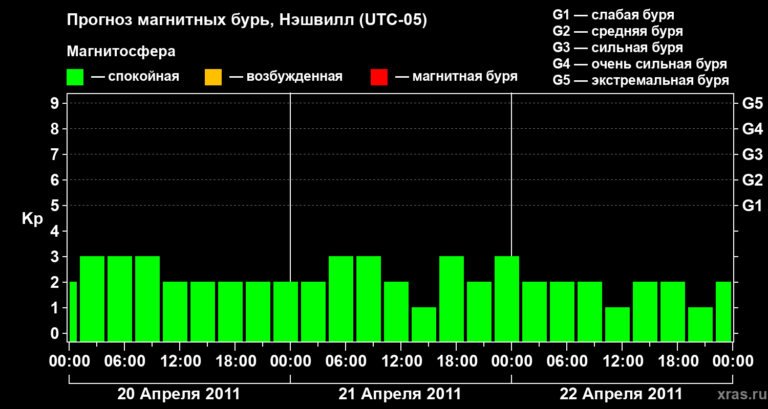 Прогноз магнитных бурь в Нэшвилле — 20 апреля 2011 года
