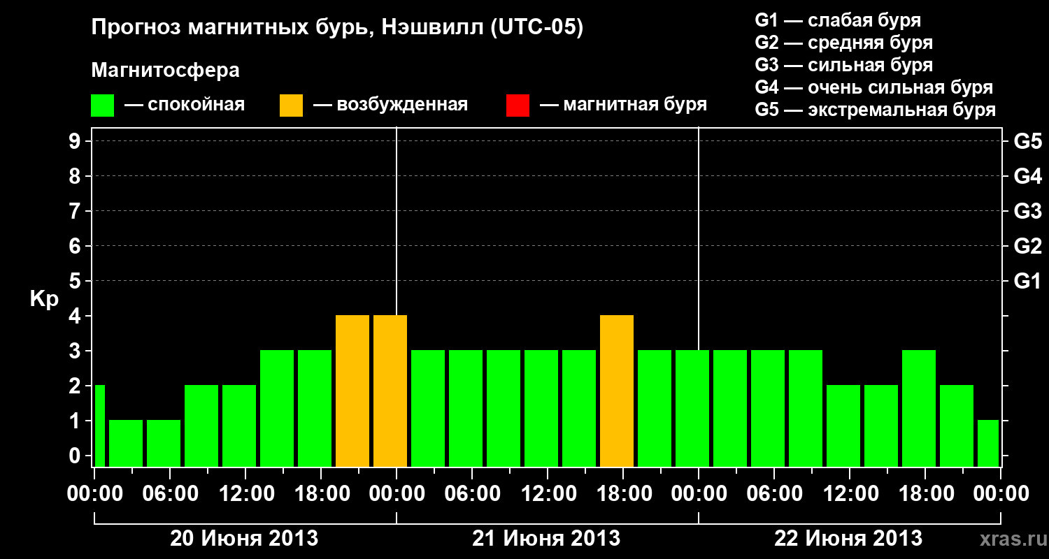 Прогноз магнитных бурь в Нэшвилле — 20 июня 2013 года