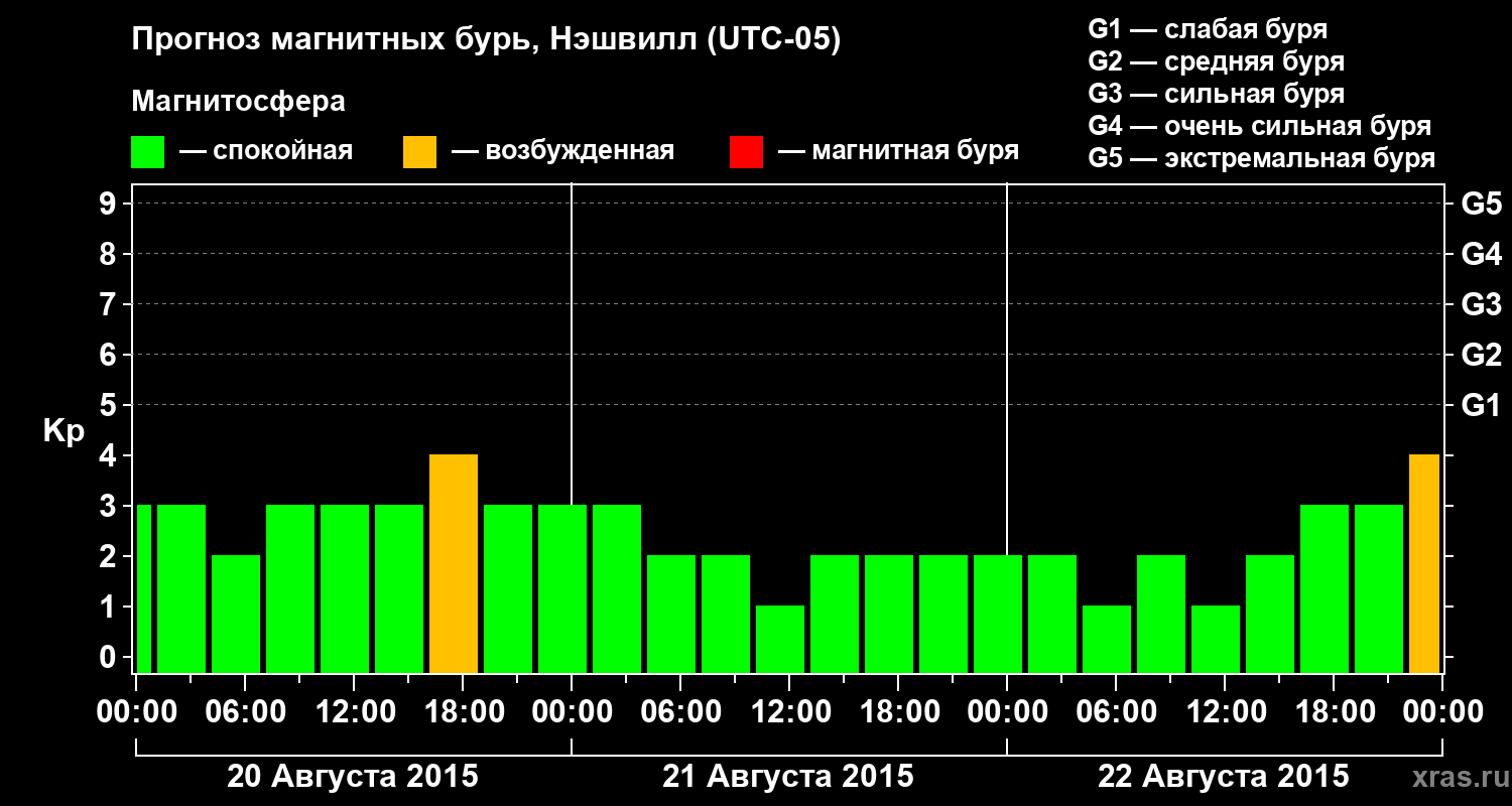Прогноз магнитных бурь в Нэшвилле — 20 августа 2015 года