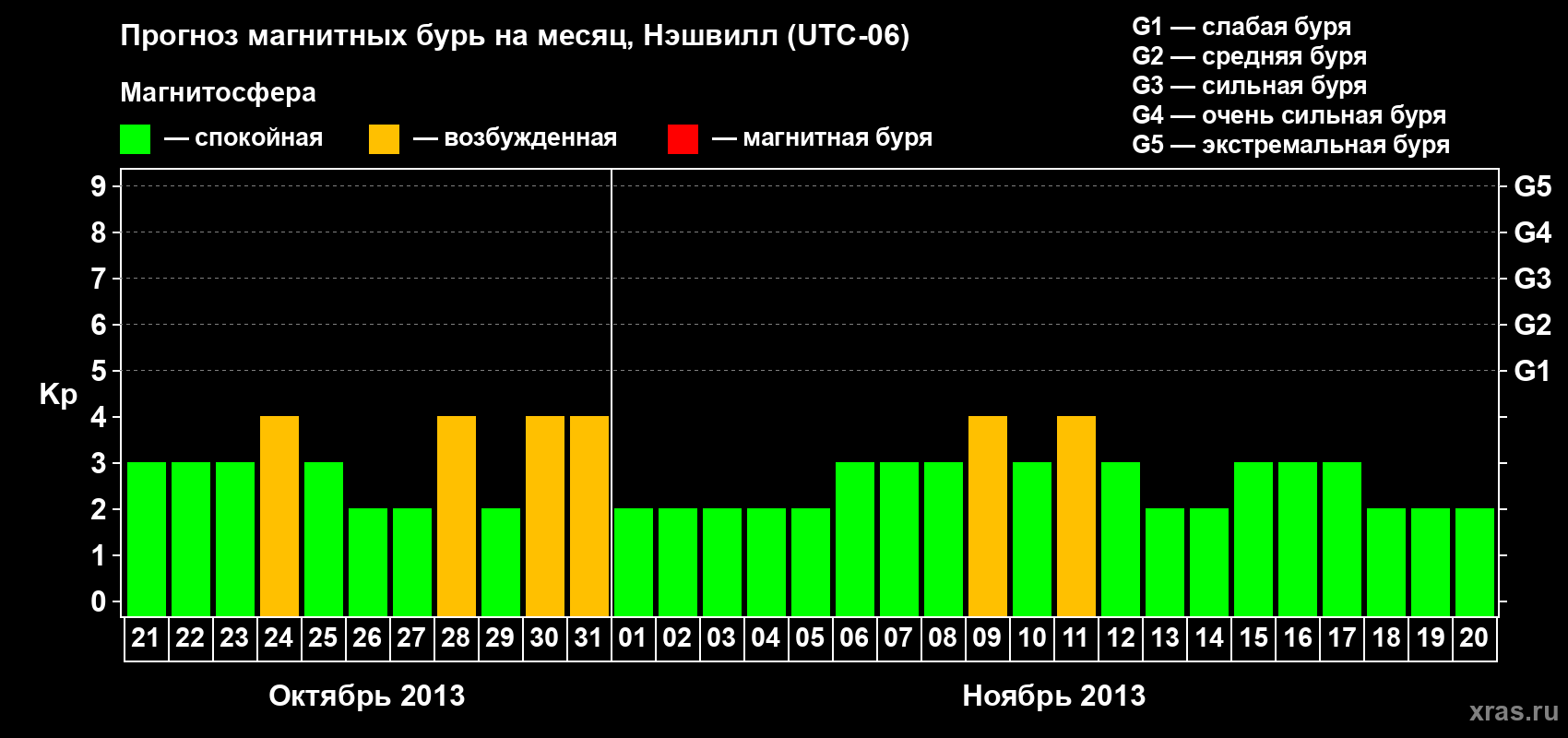 Прогноз магнитных бурь в Нэшвилле — 21 октября 2013 года