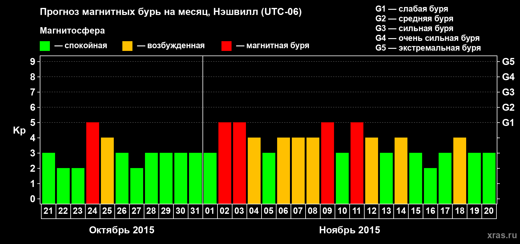 Прогноз магнитных бурь в Нэшвилле — 21 октября 2015 года