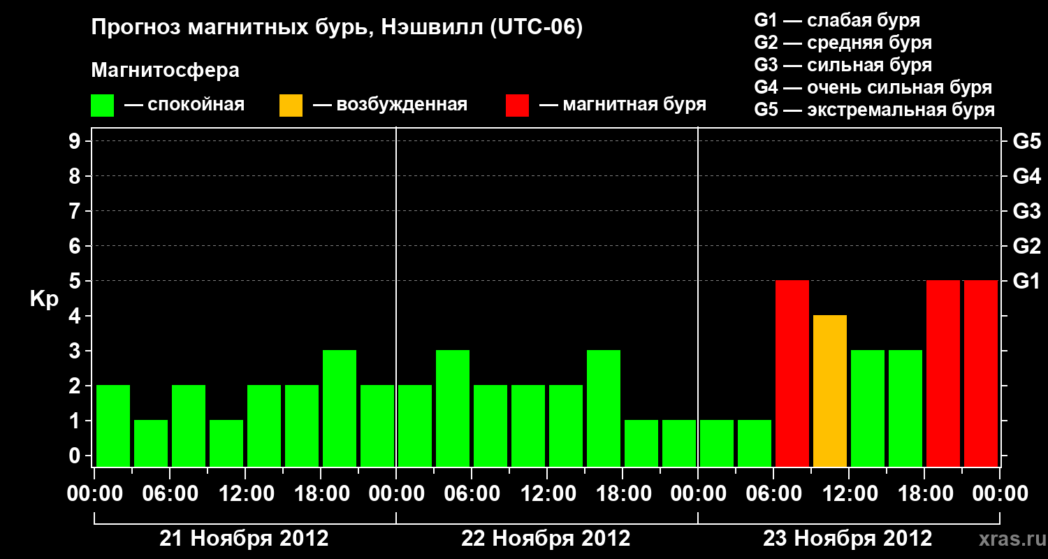 Прогноз магнитных бурь в Нэшвилле — 21 ноября 2012 года