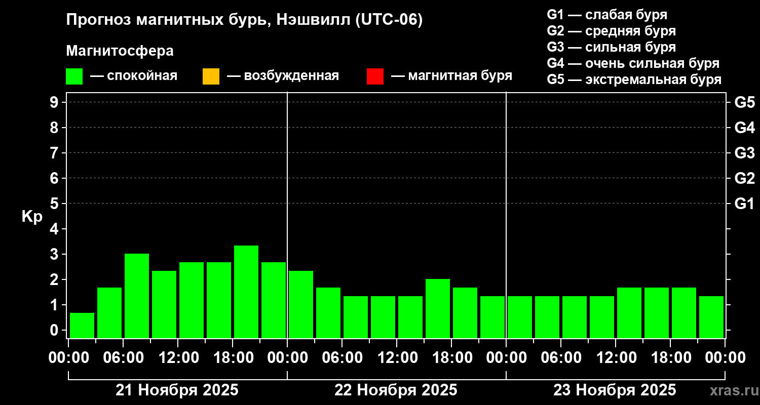 Прогноз магнитных бурь в Нэшвилле — 21 ноября 2025 года