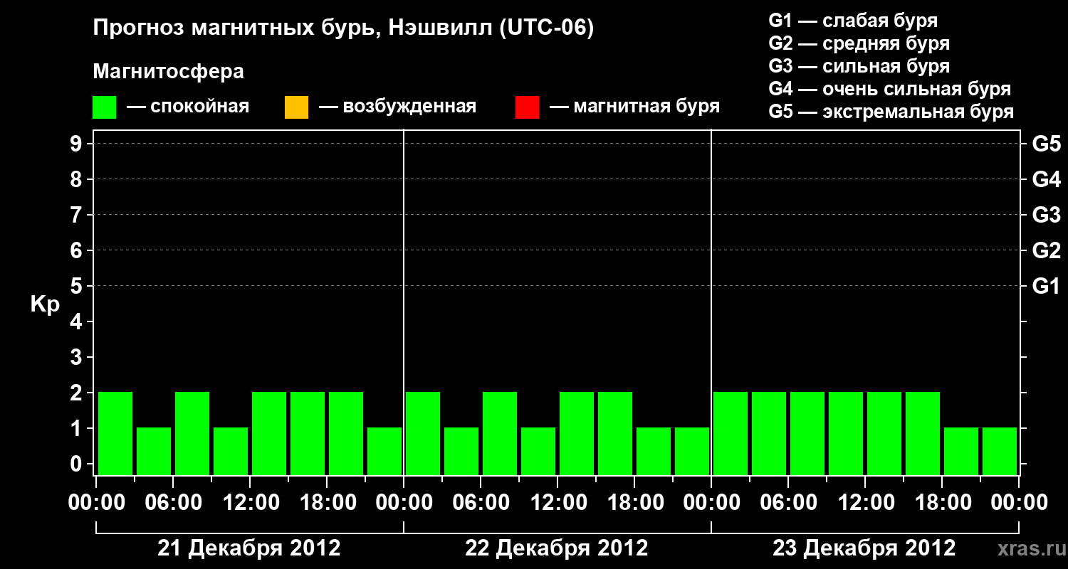 Прогноз магнитных бурь в Нэшвилле — 21 декабря 2012 года