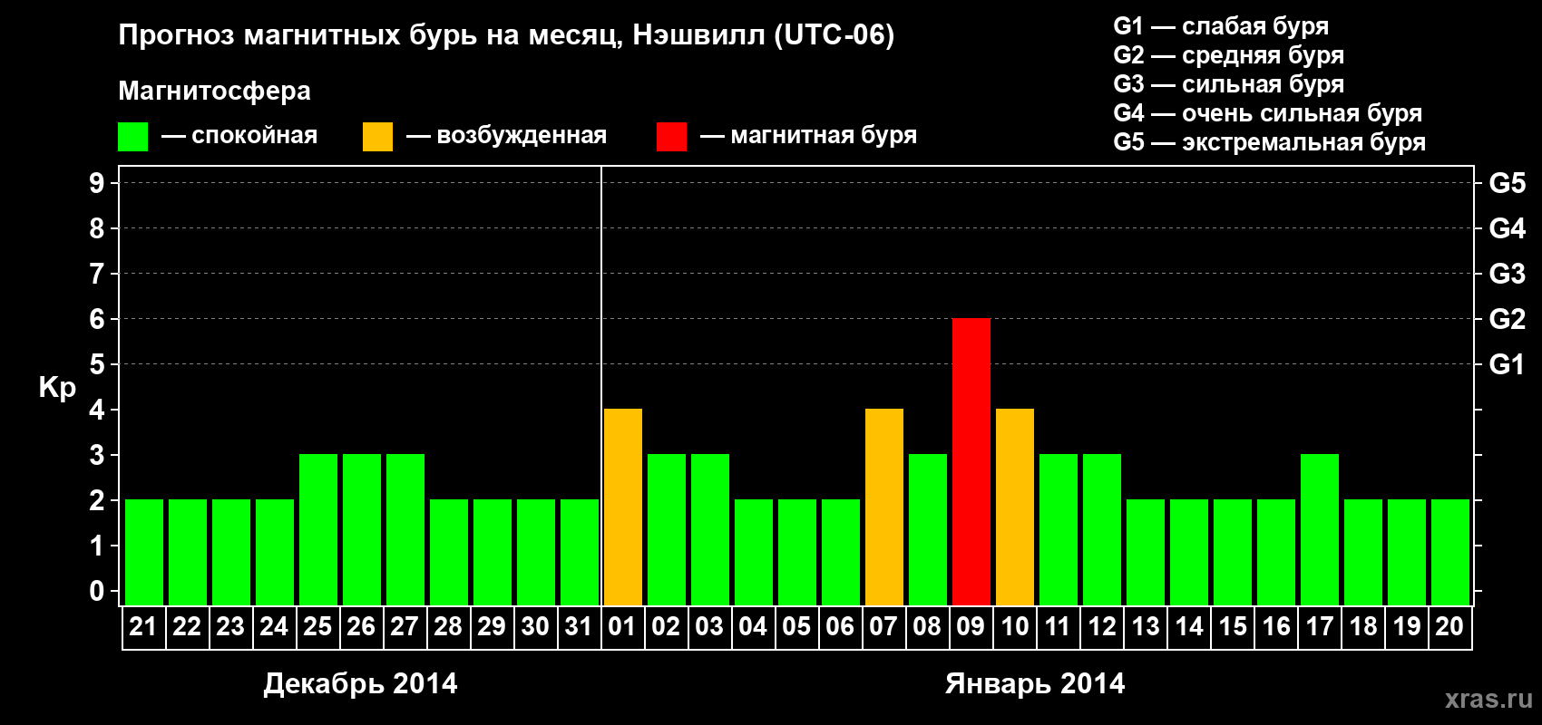 Прогноз магнитных бурь в Нэшвилле — 21 декабря 2013 года