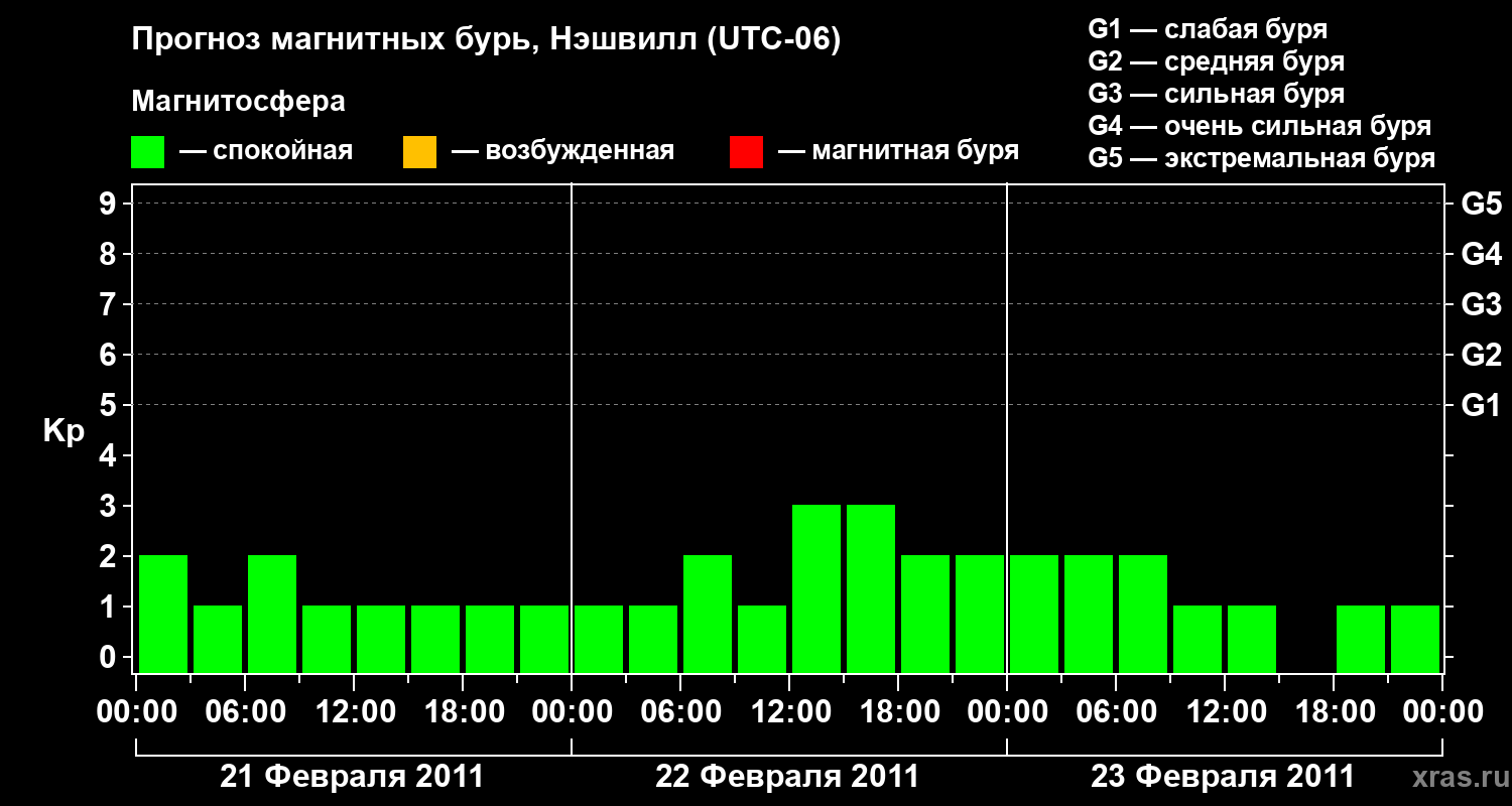 Прогноз магнитных бурь в Нэшвилле — 21 февраля 2011 года
