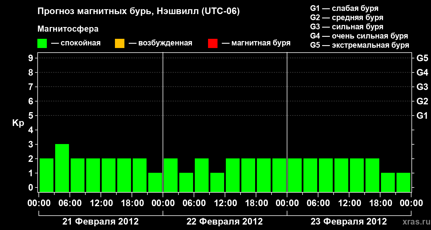 Прогноз магнитных бурь в Нэшвилле — 21 февраля 2012 года
