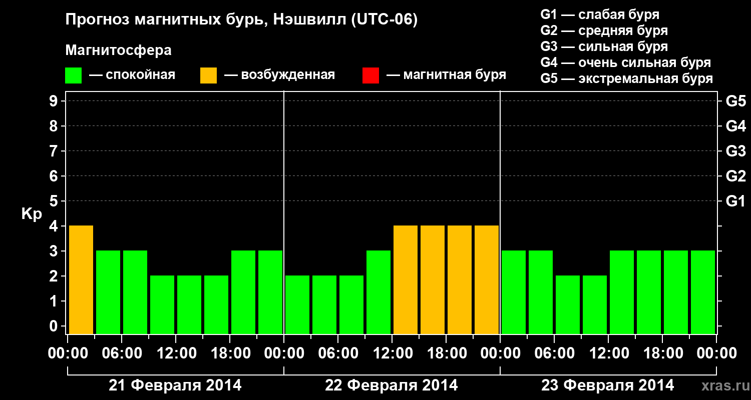 Прогноз магнитных бурь в Нэшвилле — 21 февраля 2014 года