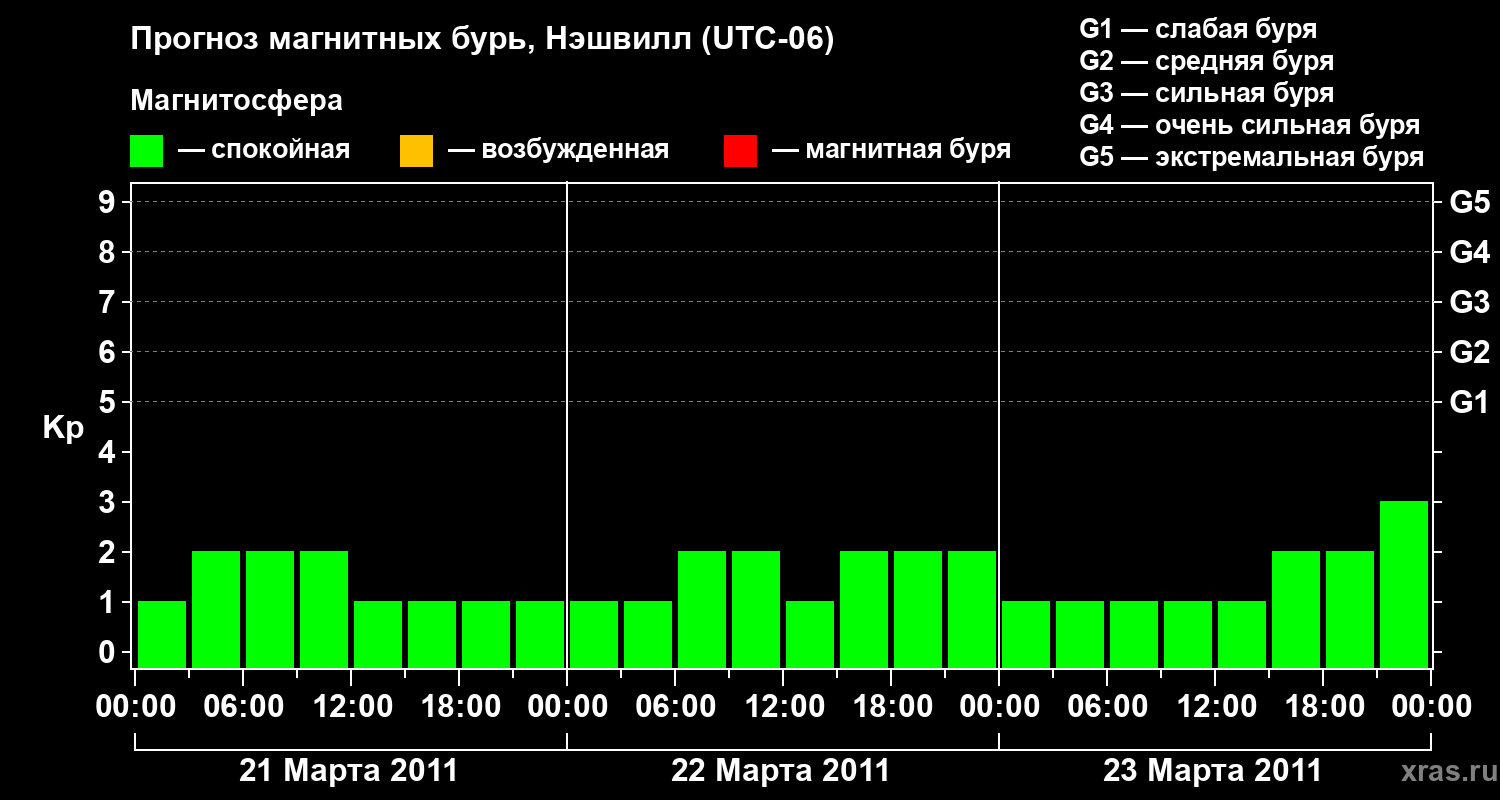 Прогноз магнитных бурь в Нэшвилле — 21 марта 2011 года