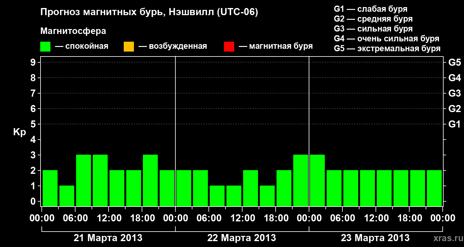 Прогноз магнитных бурь в Нэшвилле — 21 марта 2013 года