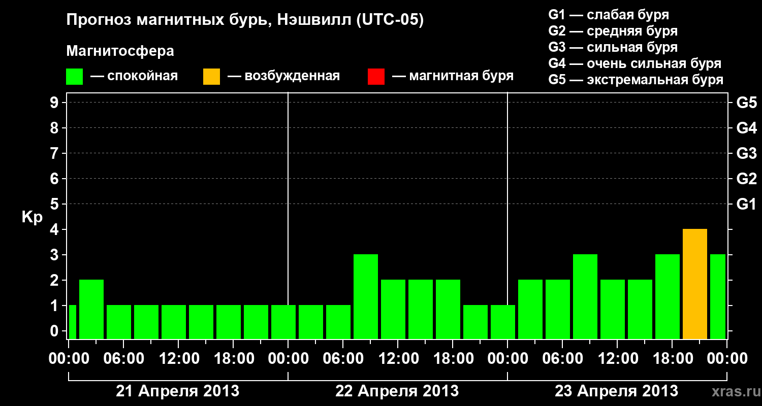 Прогноз магнитных бурь в Нэшвилле — 21 апреля 2013 года