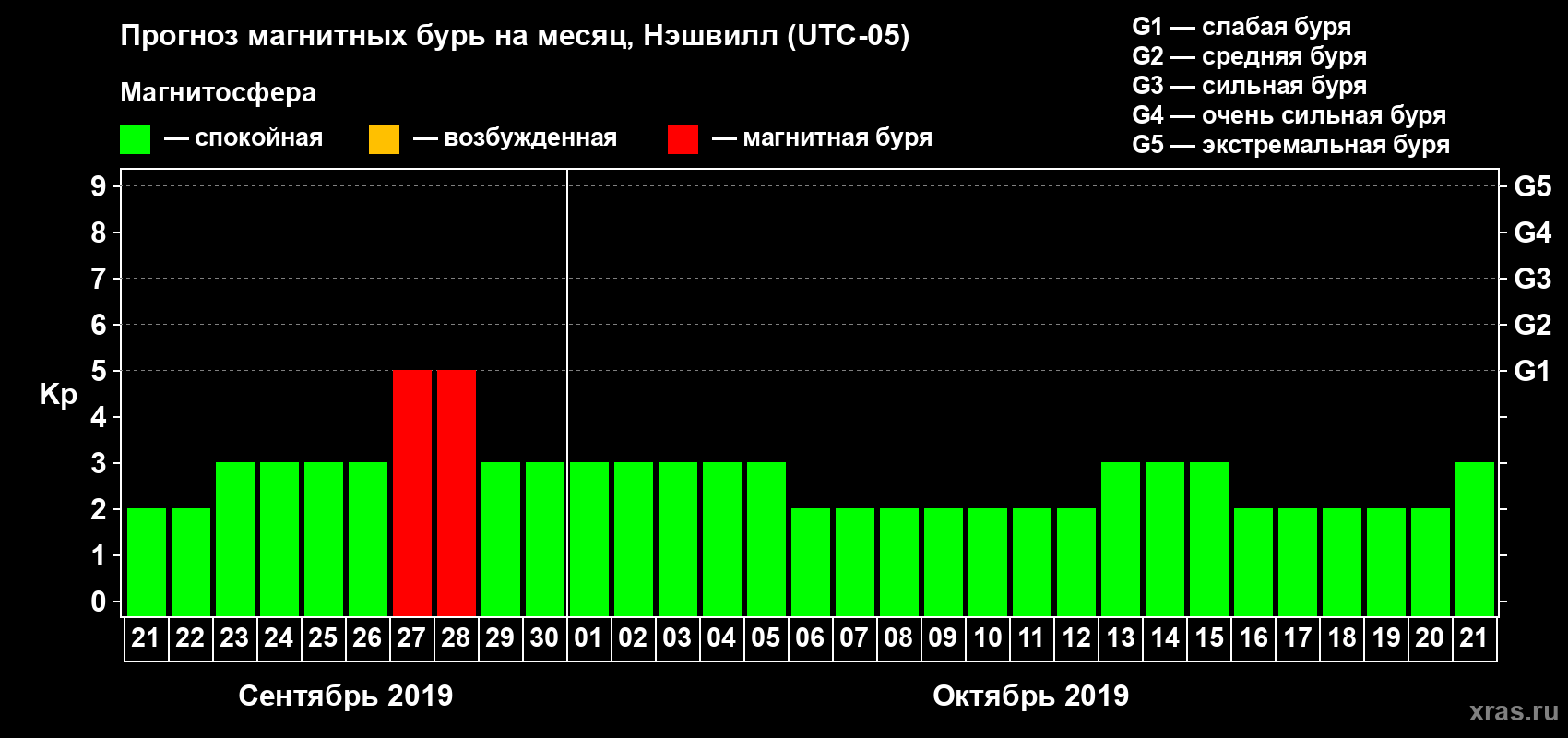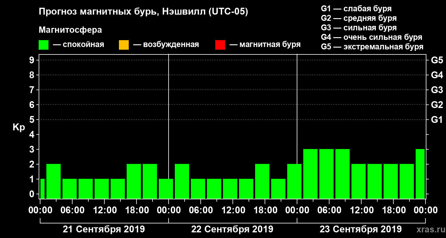Прогноз магнитных бурь в Нэшвилле на 21 сентября 2019 года