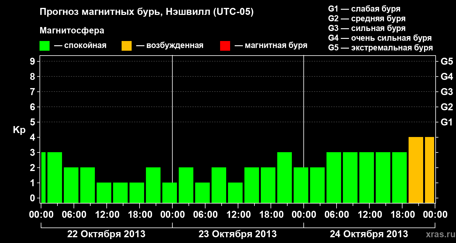Прогноз магнитных бурь в Нэшвилле — 22 октября 2013 года