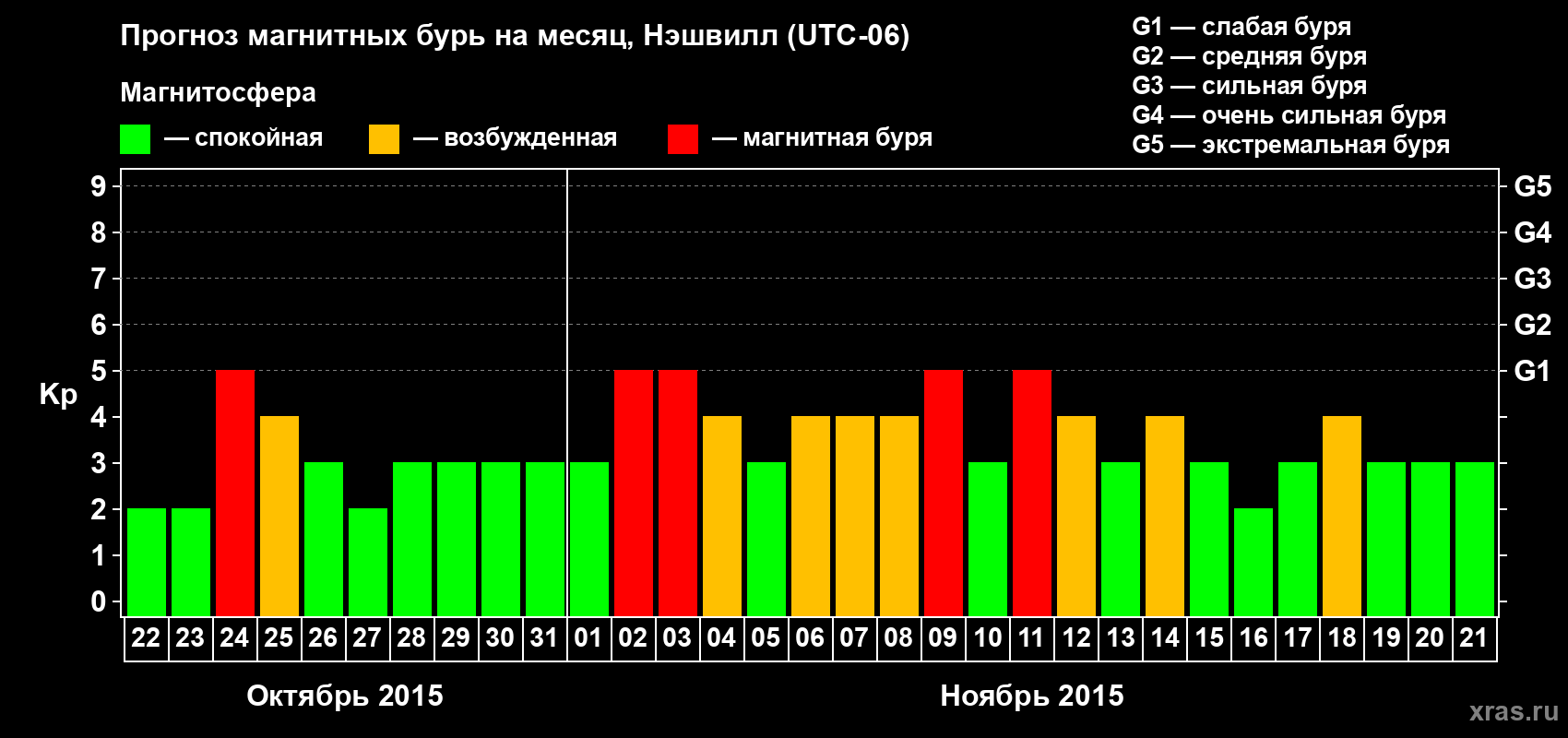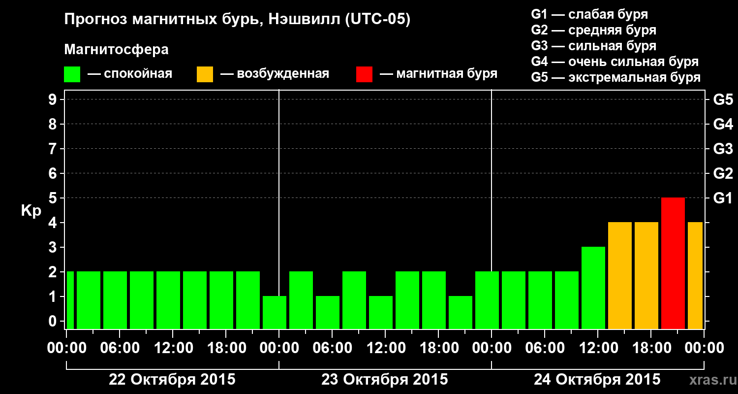 Прогноз магнитных бурь в Нэшвилле — 22 октября 2015 года