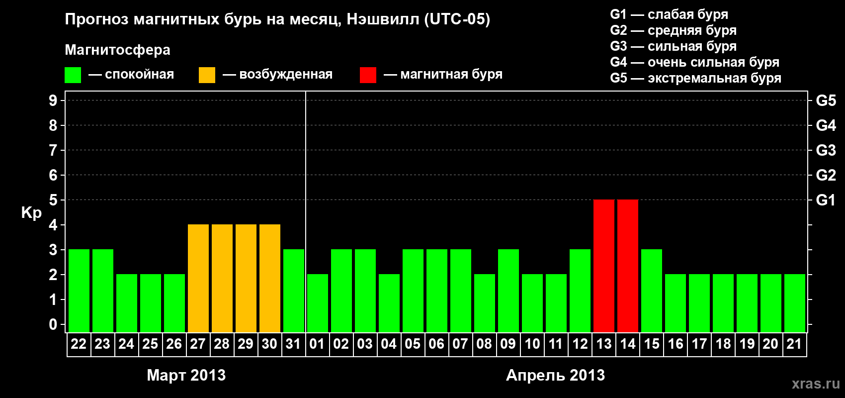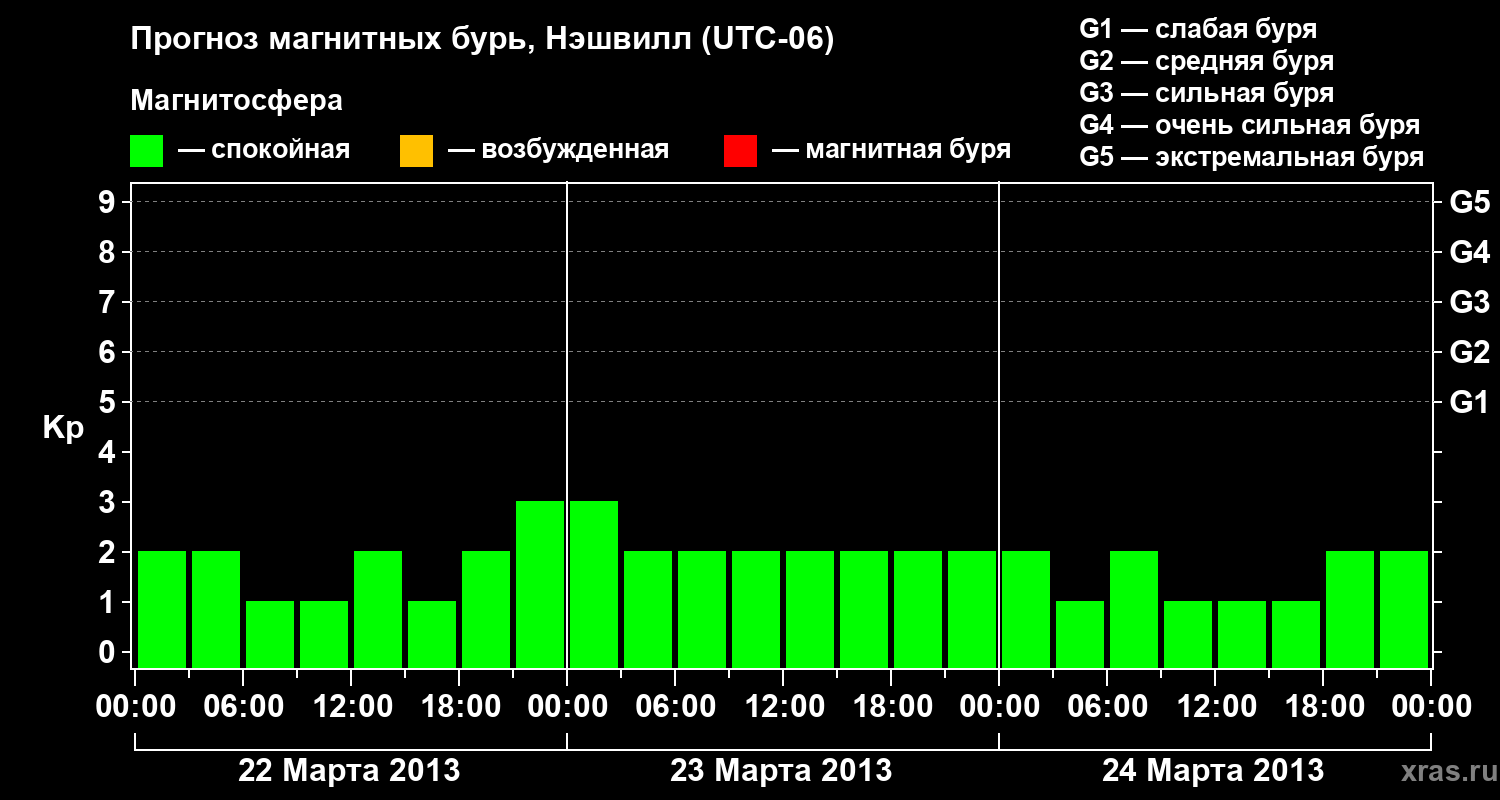 Прогноз магнитных бурь в Нэшвилле — 22 марта 2013 года