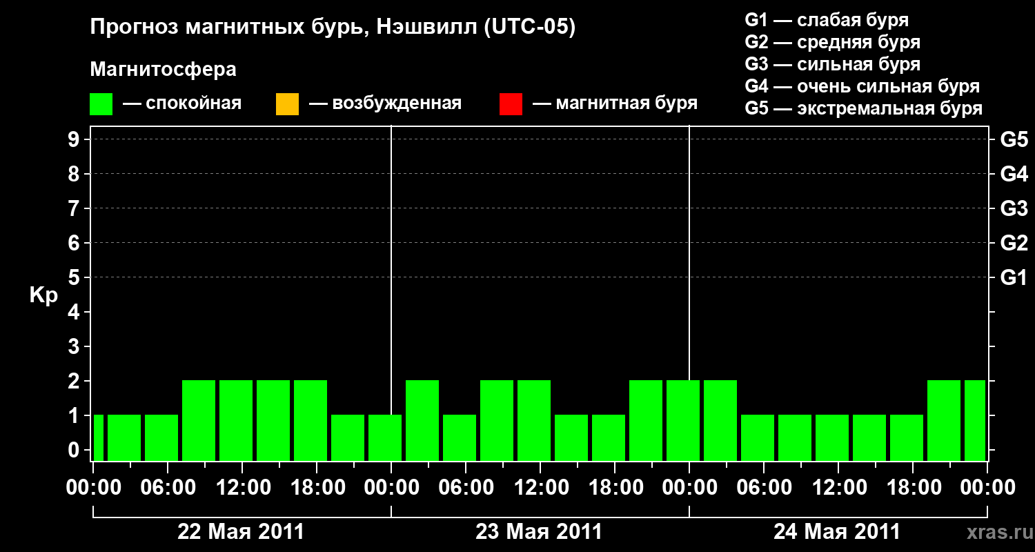 Прогноз магнитных бурь в Нэшвилле на 22 мая 2011 года