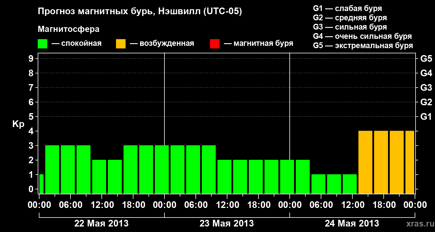 Прогноз магнитных бурь в Нэшвилле — 22 мая 2013 года