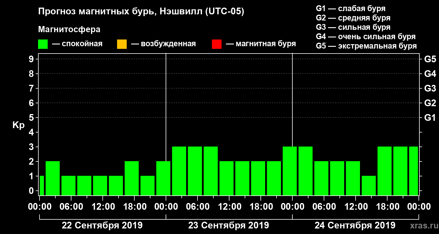 Прогноз магнитных бурь в Нэшвилле на 22 сентября 2019 года