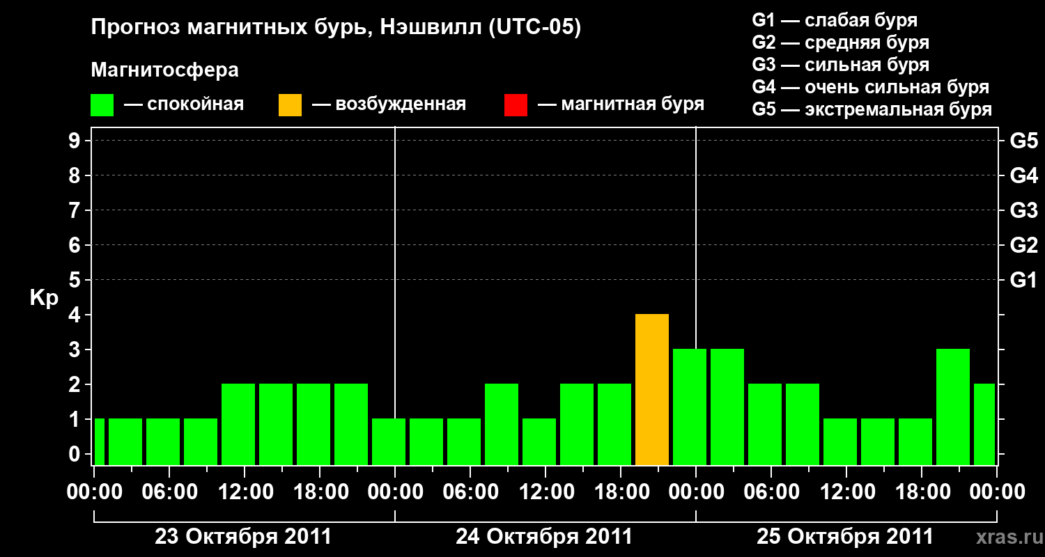 Прогноз магнитных бурь в Нэшвилле — 23 октября 2011 года