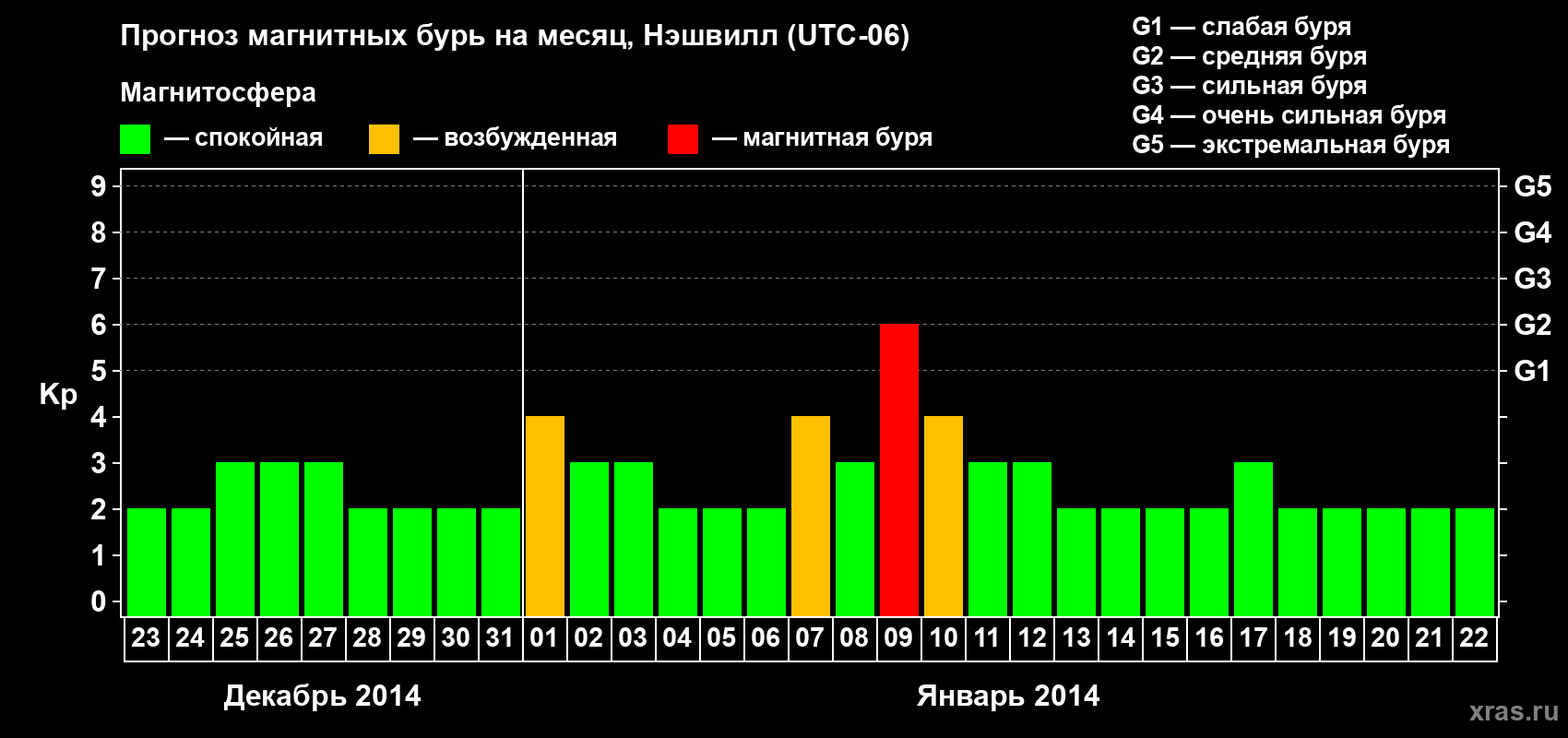Прогноз магнитных бурь в Нэшвилле — 23 декабря 2013 года