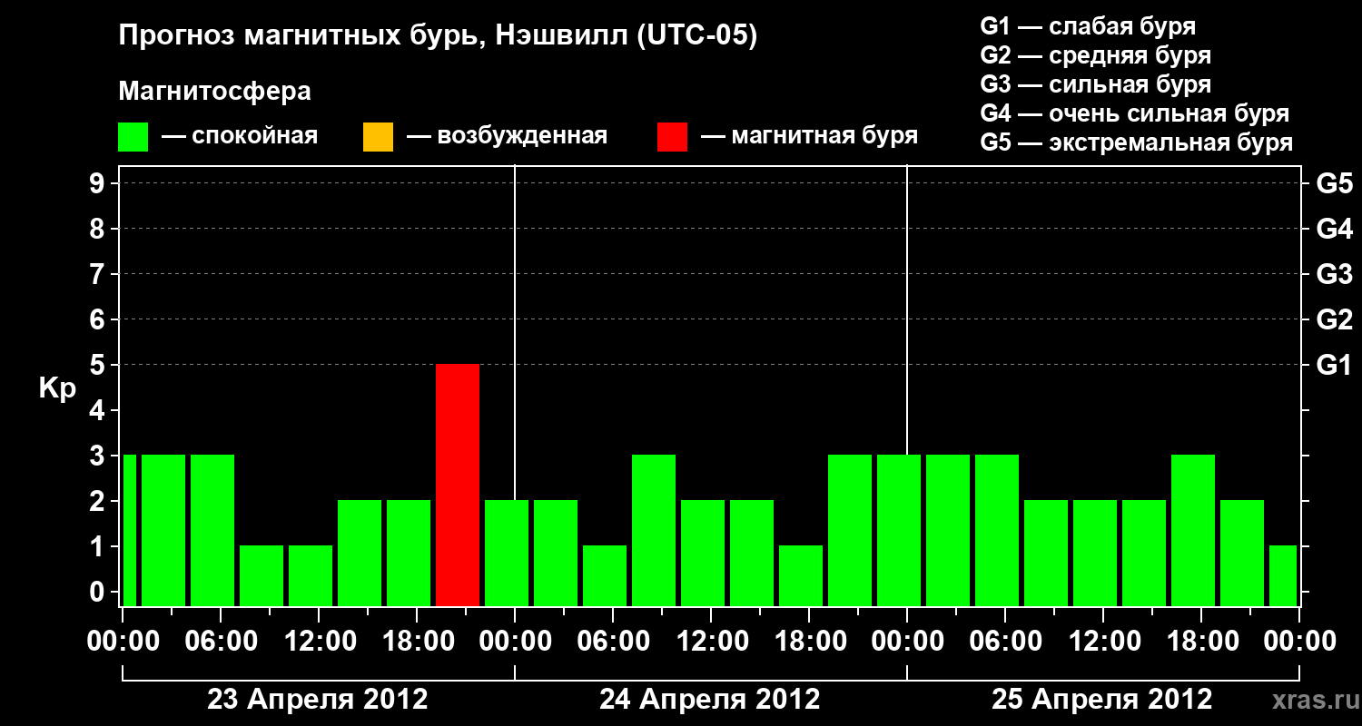 Прогноз магнитных бурь в Нэшвилле — 23 апреля 2012 года