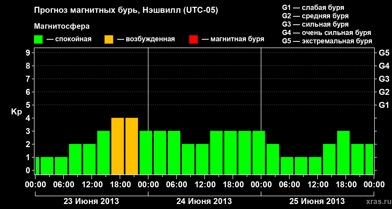Прогноз магнитных бурь в Нэшвилле — 23 июня 2013 года