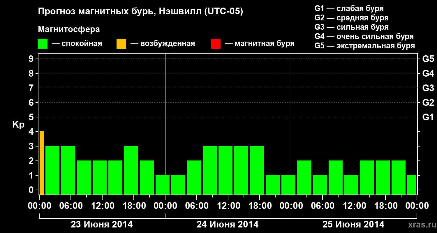 Прогноз магнитных бурь в Нэшвилле — 23 июня 2014 года