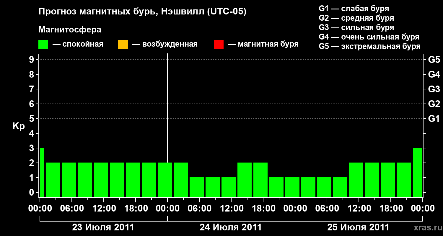 Прогноз магнитных бурь в Нэшвилле — 23 июля 2011 года