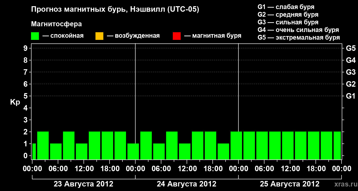 Прогноз магнитных бурь в Нэшвилле — 23 августа 2012 года