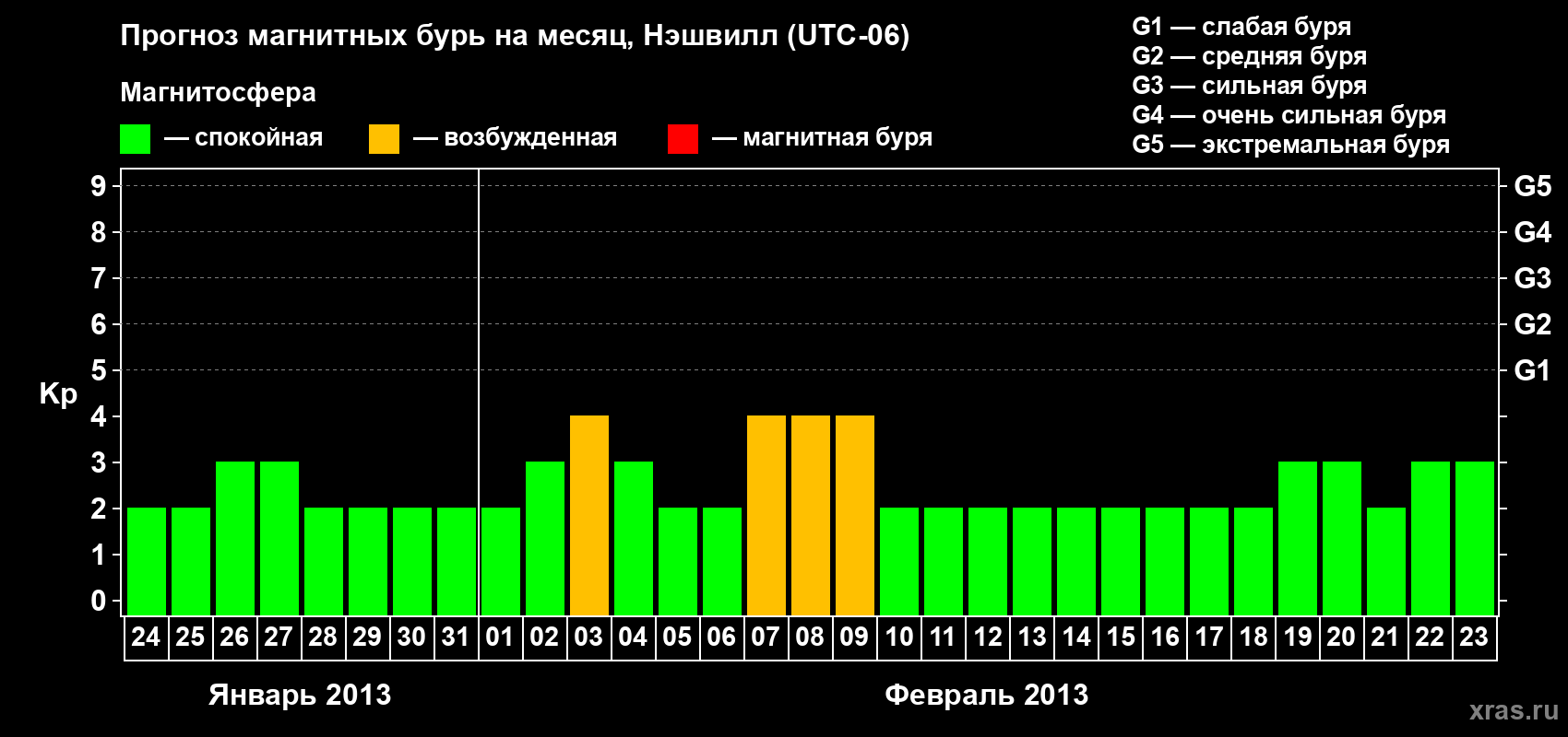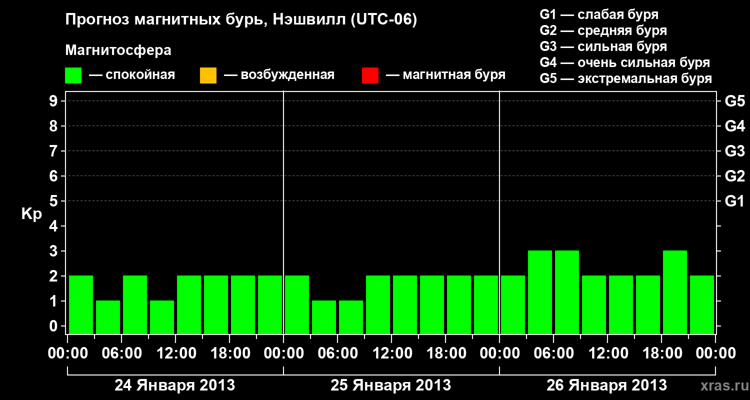 Прогноз магнитных бурь в Нэшвилле — 24 января 2013 года