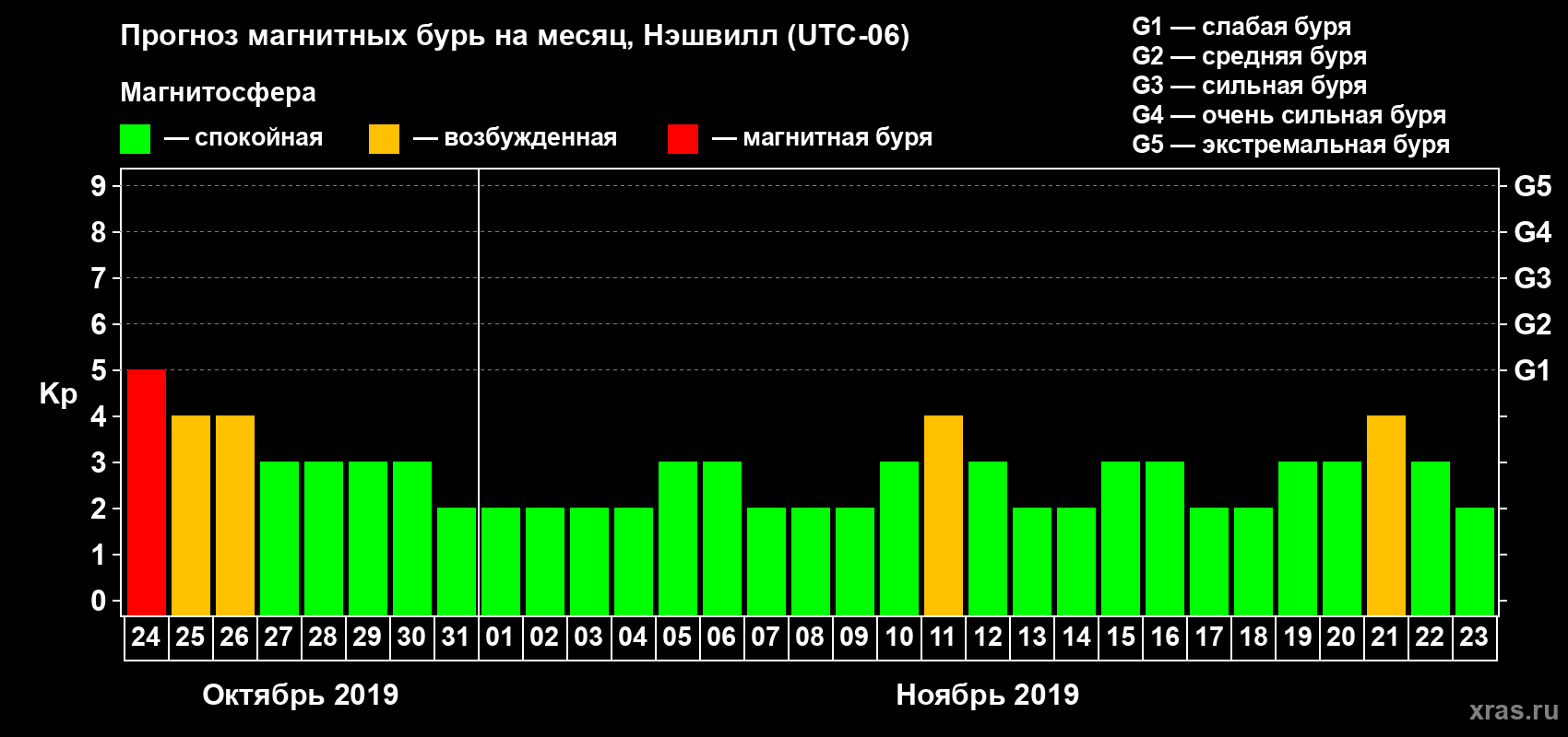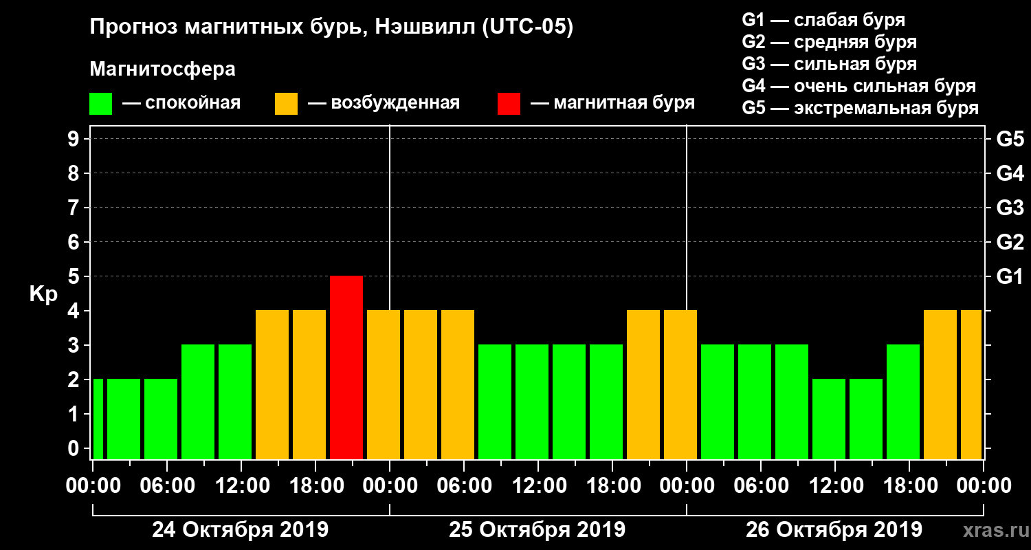 Прогноз магнитных бурь в Нэшвилле на 24 октября 2019 года