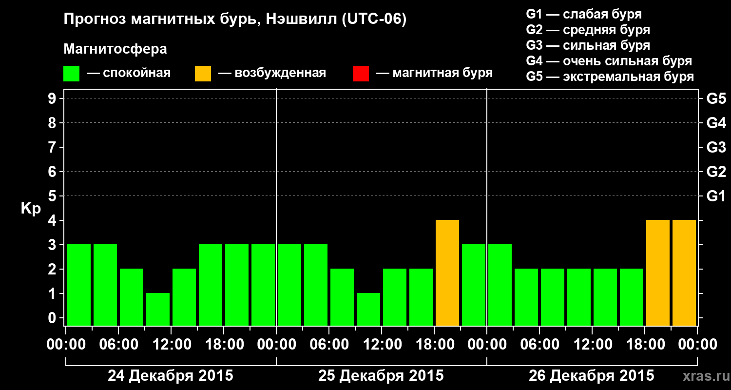 Прогноз магнитных бурь в Нэшвилле — 24 декабря 2015 года