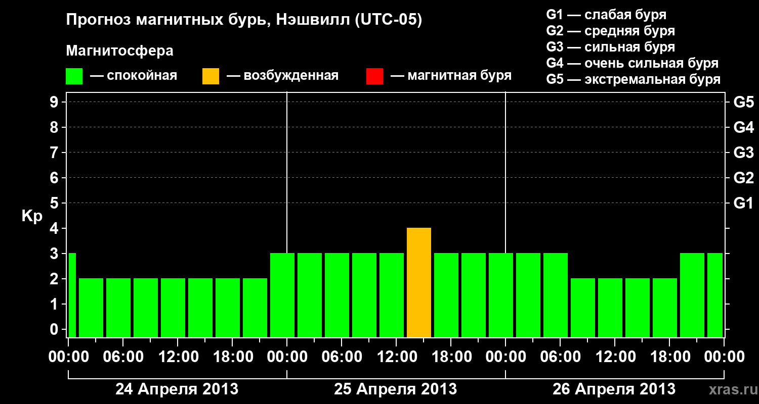 Прогноз магнитных бурь в Нэшвилле — 24 апреля 2013 года