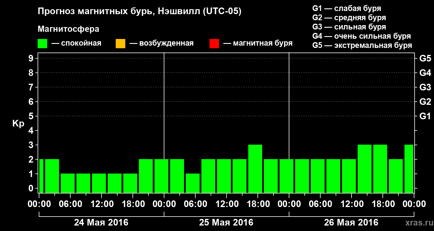 Прогноз магнитных бурь в Нэшвилле — 24 мая 2016 года