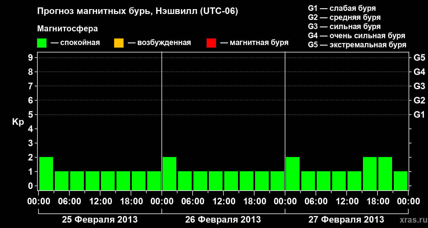 Прогноз магнитных бурь в Нэшвилле — 25 февраля 2013 года