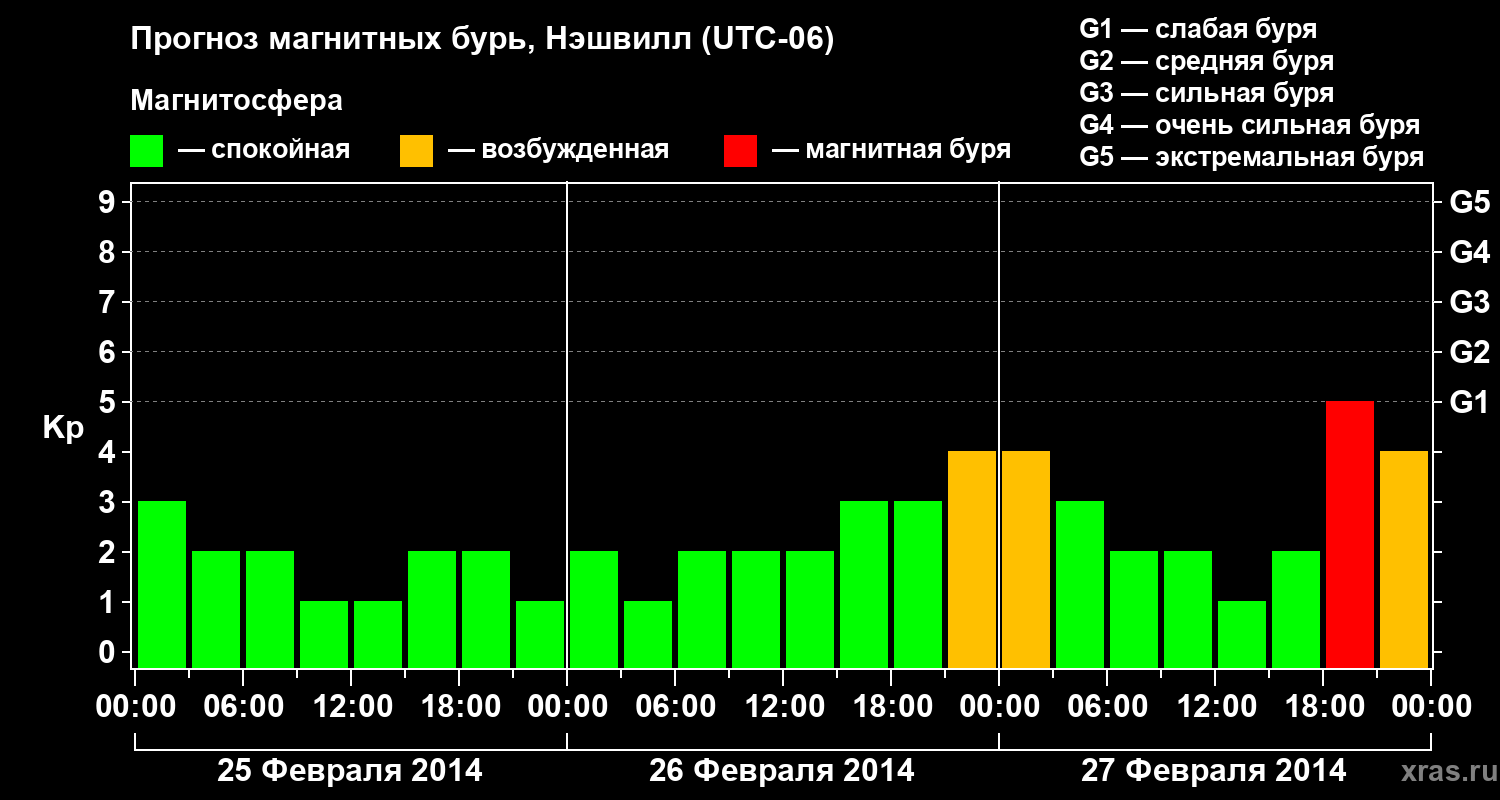 Прогноз магнитных бурь в Нэшвилле — 25 февраля 2014 года