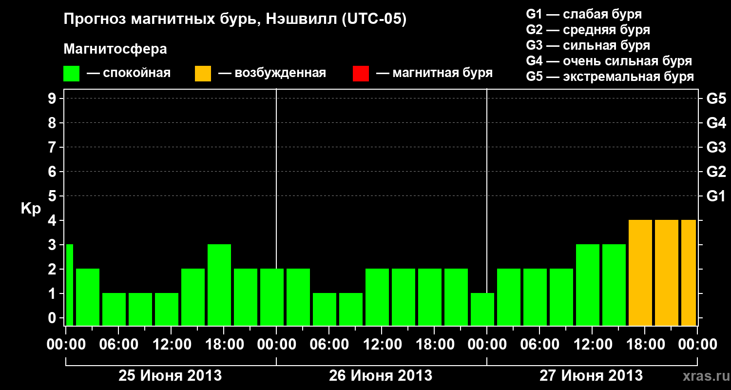 Прогноз магнитных бурь в Нэшвилле — 25 июня 2013 года