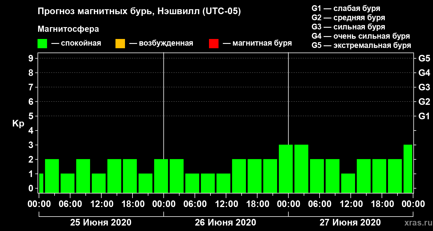 Прогноз магнитных бурь в Нэшвилле на 25 июня 2020 года