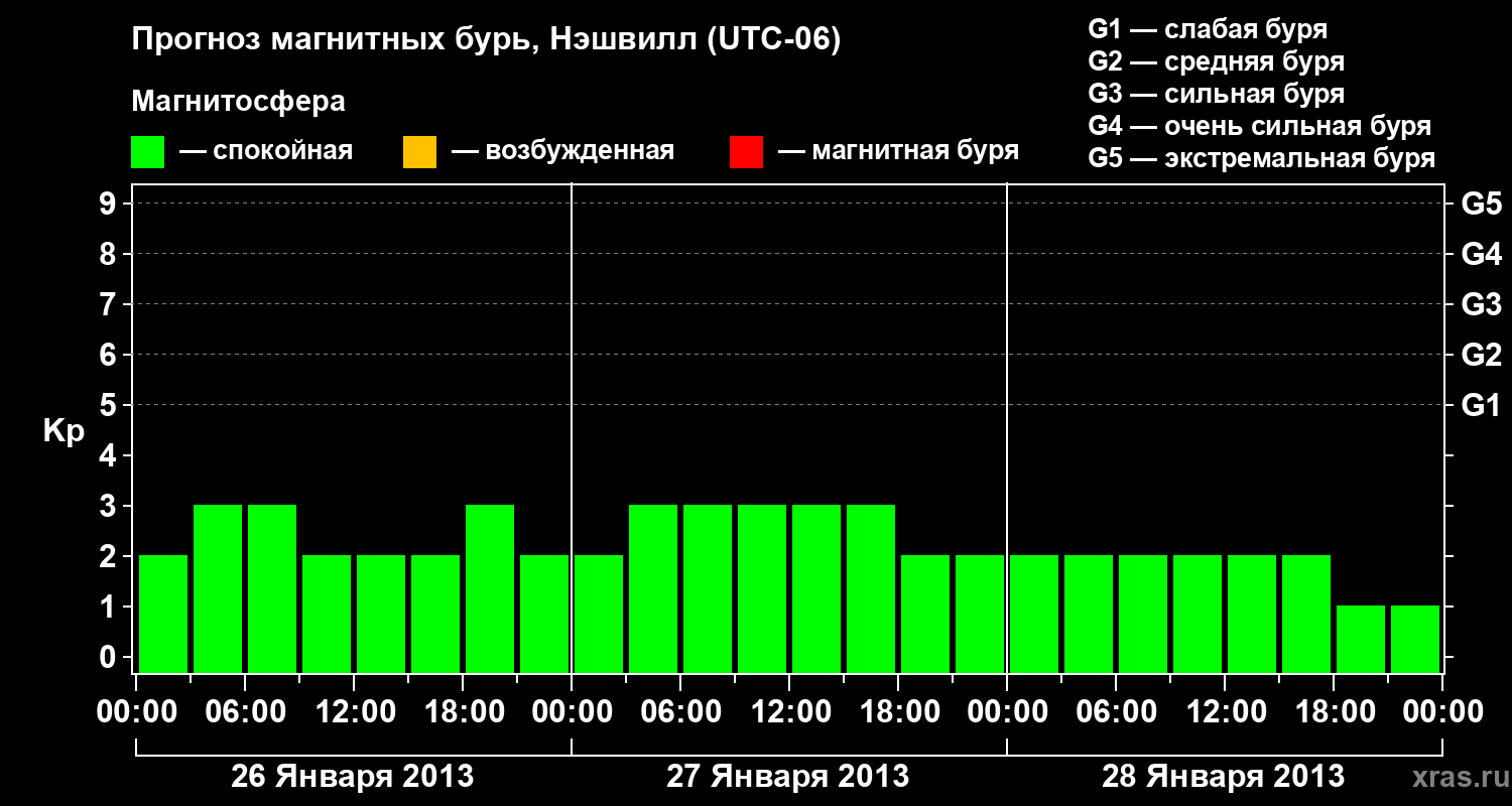 Прогноз магнитных бурь в Нэшвилле — 26 января 2013 года
