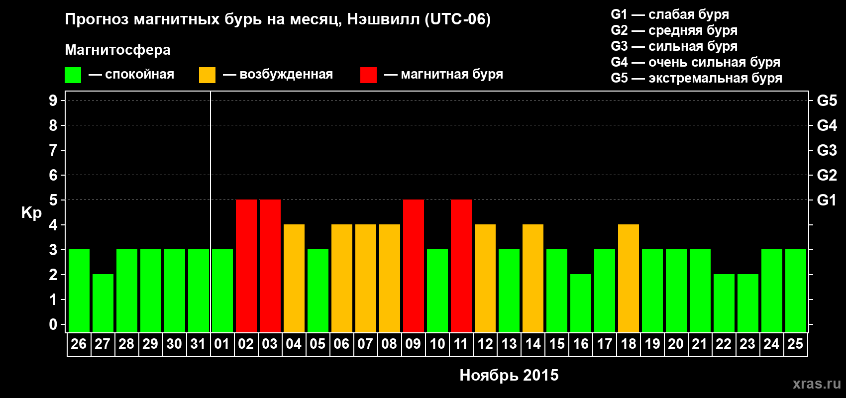Прогноз магнитных бурь в Нэшвилле — 26 октября 2015 года