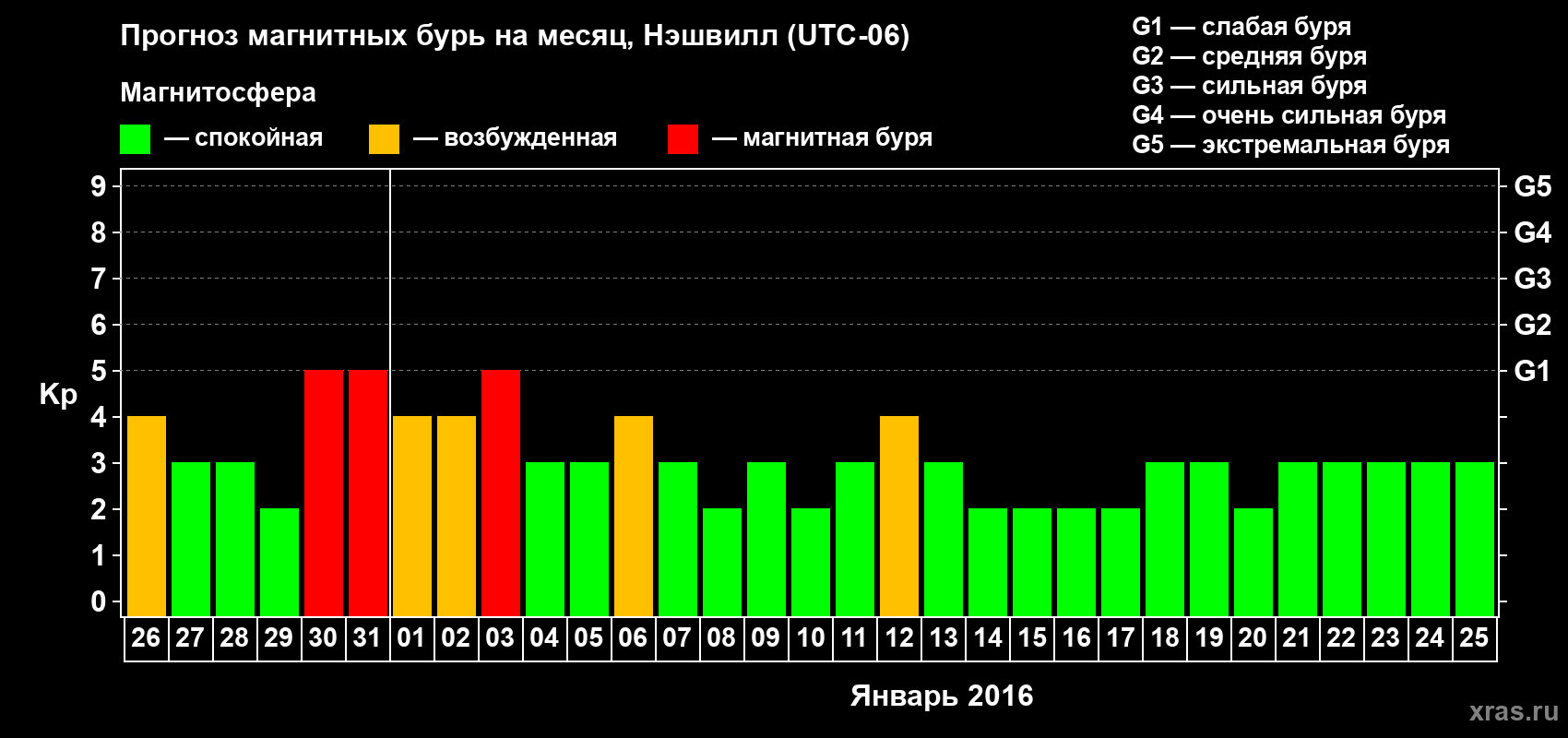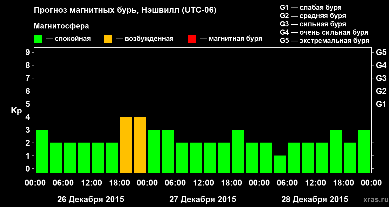 Прогноз магнитных бурь в Нэшвилле — 26 декабря 2015 года