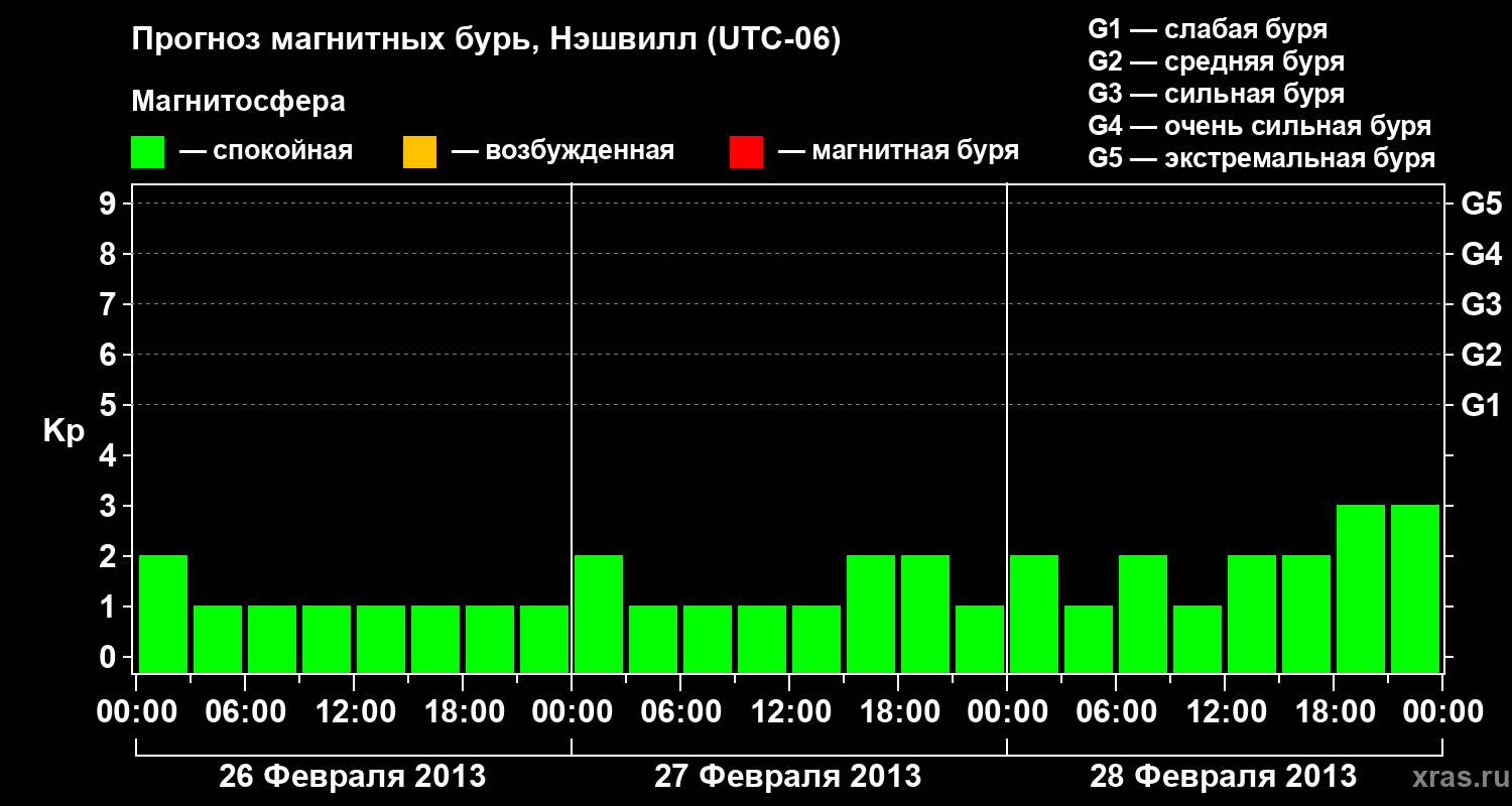 Прогноз магнитных бурь в Нэшвилле — 26 февраля 2013 года