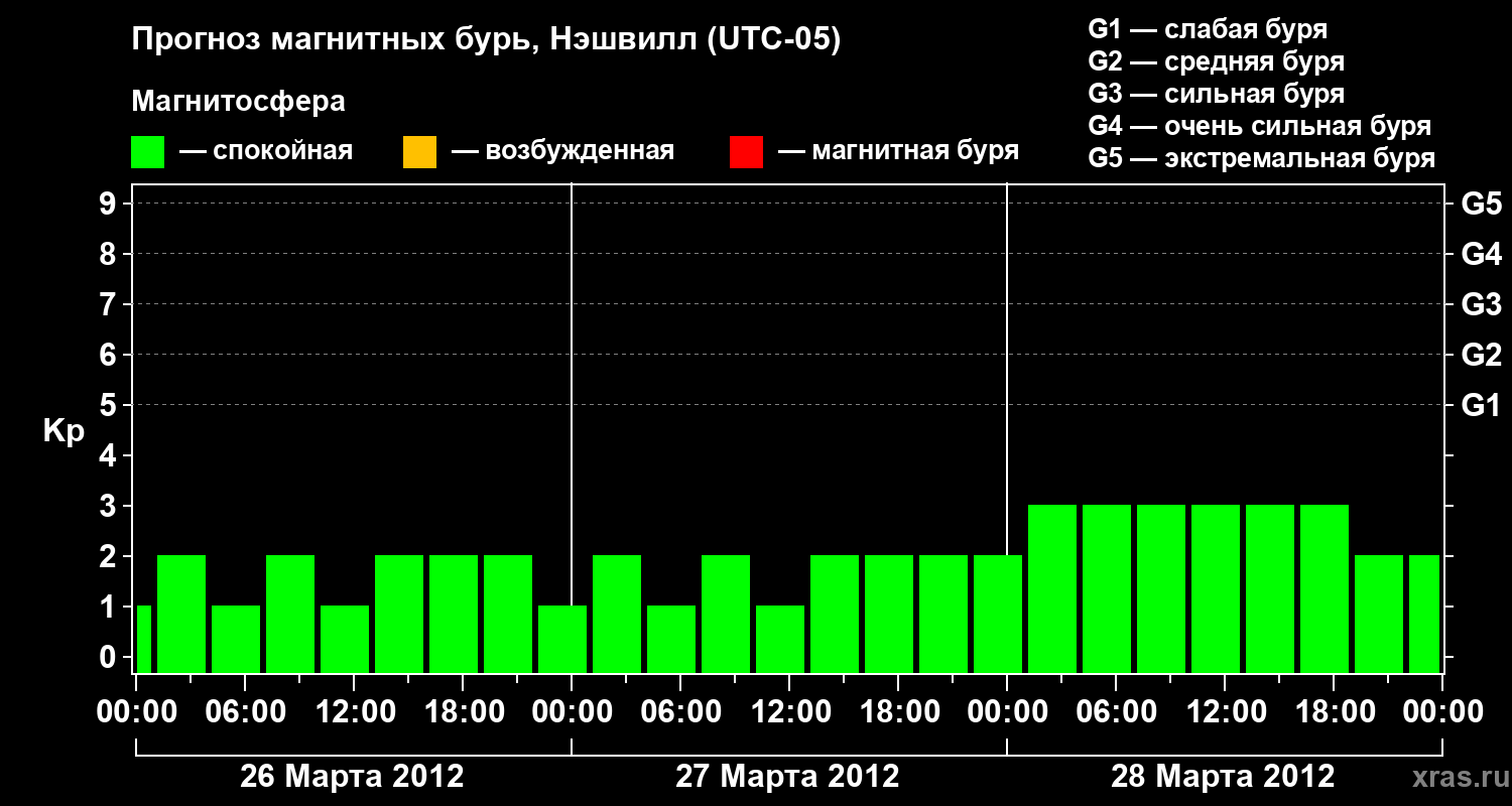 Прогноз магнитных бурь в Нэшвилле — 26 марта 2012 года