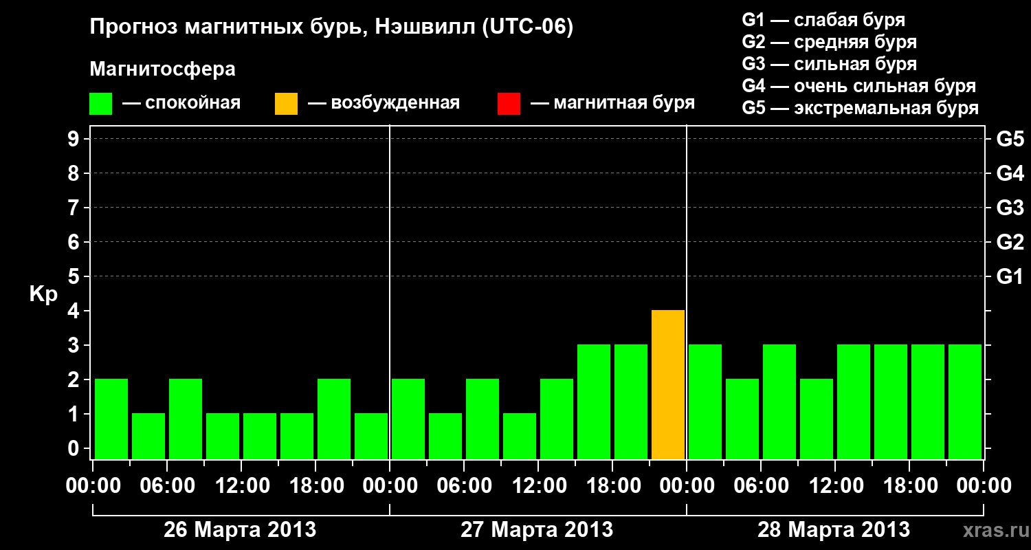 Прогноз магнитных бурь в Нэшвилле — 26 марта 2013 года
