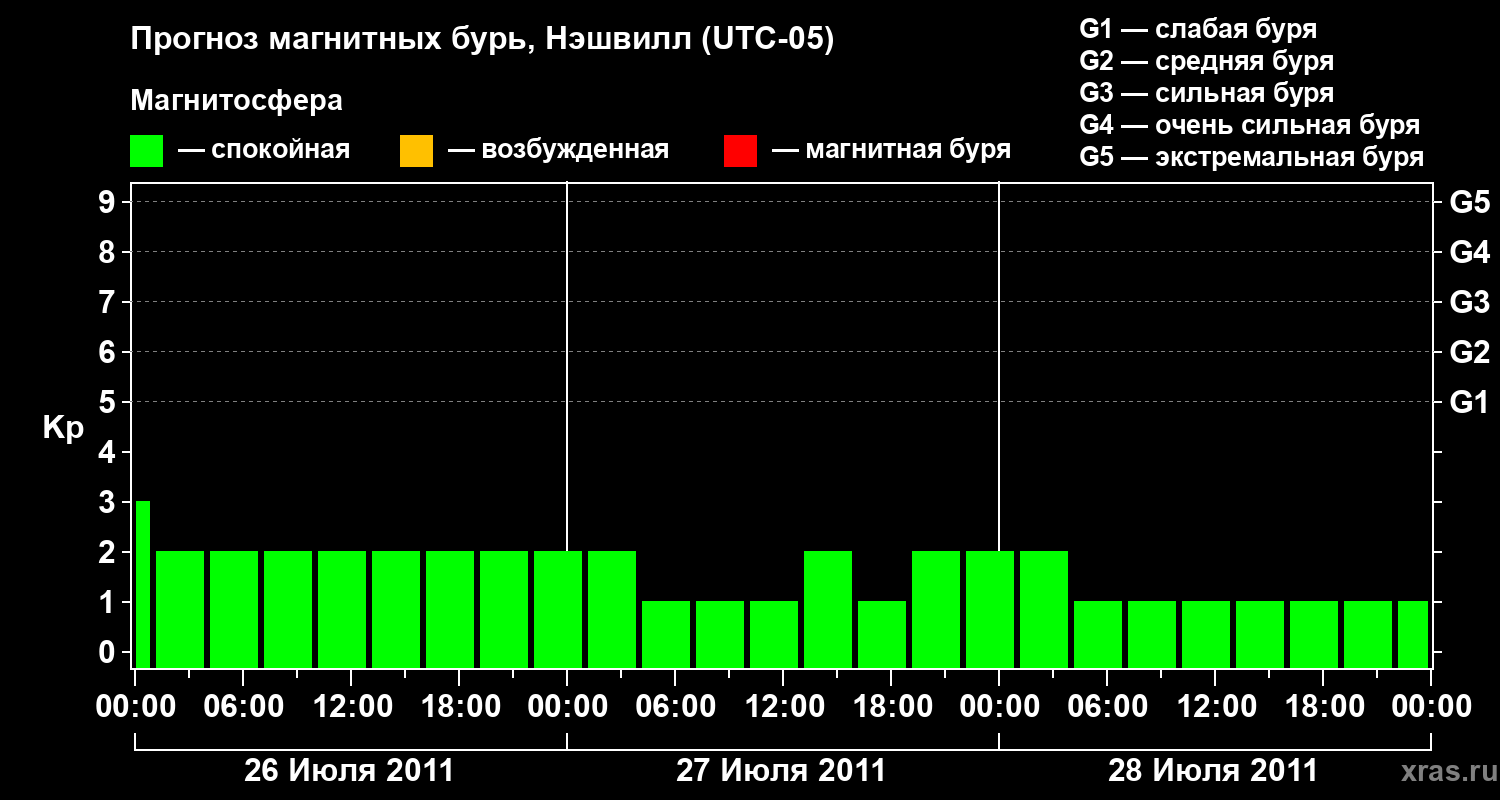 Прогноз магнитных бурь в Нэшвилле на 26 июля 2011 года